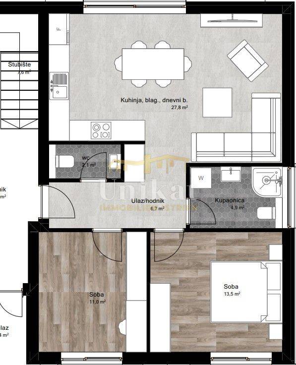 Appartamenti in nuova costruzione a 3 km da Poreč e dal mare. Questo appartamento si troverà al piano terra e sarà composto da ingresso, soggiorno con cucina e sala da pranzo, WC, due camere da letto e bagno. L’appartamento sarà dotato di riscaldamento a pavimento elettrico e di climatizzatori per riscaldamento e raffreddamento. Disporrà di un giardino di 50 m2 e di un posto auto davanti all’edificio. La fine prevista dei lavori è l’estate 2025.