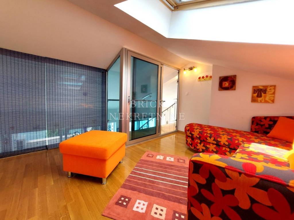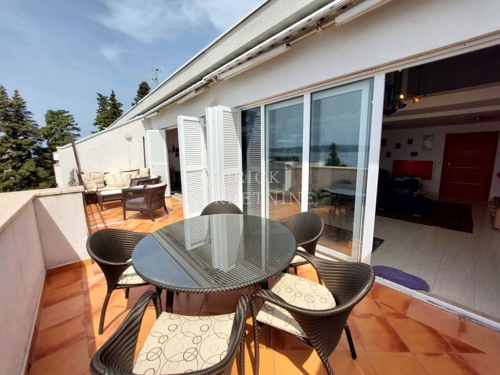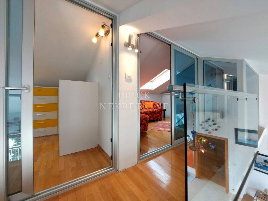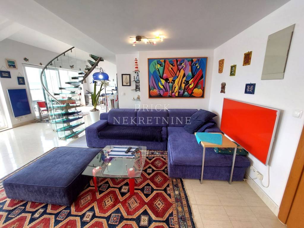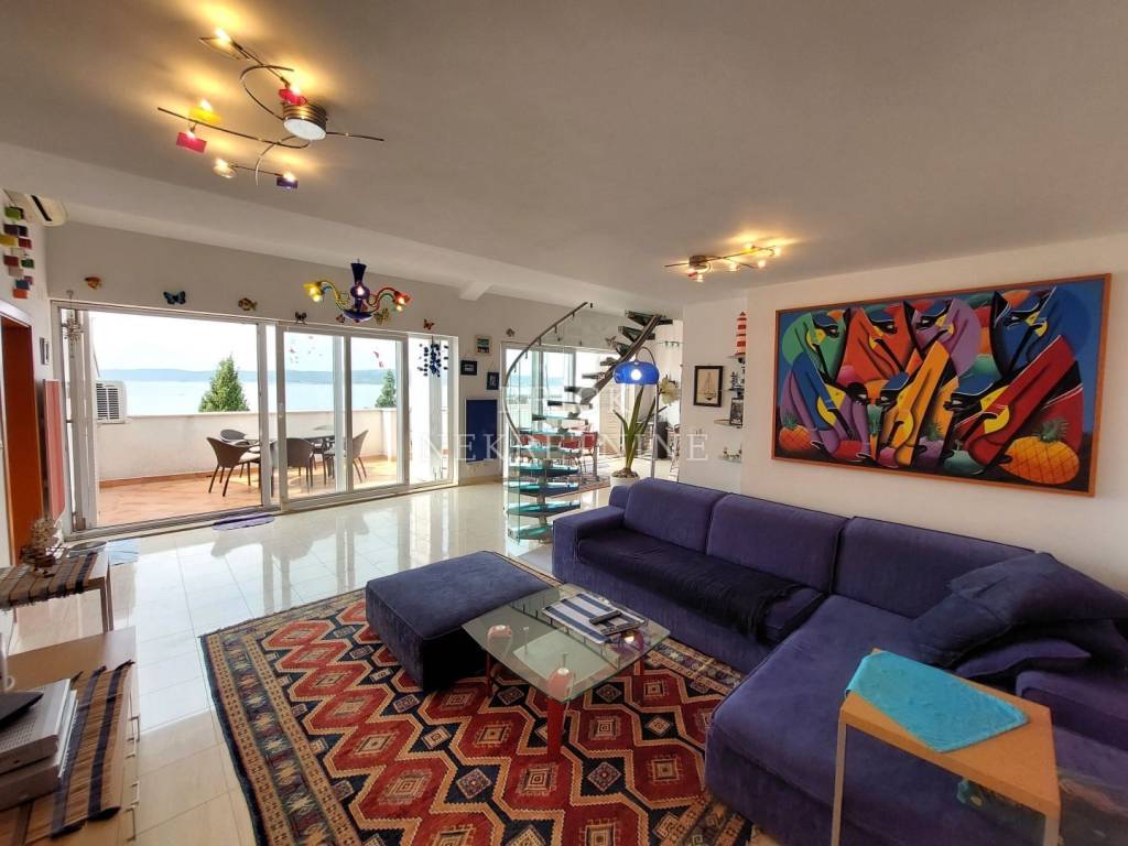Un appartamento di 6 locali a due piani con una superficie di 144 m2, situato al terzo piano di un edificio, prima fila sul mare è stato messo in vendita.