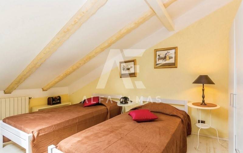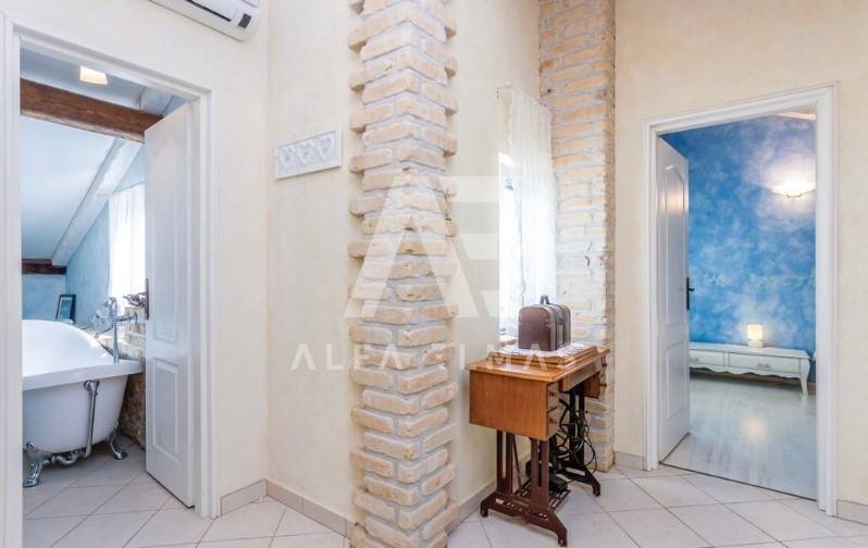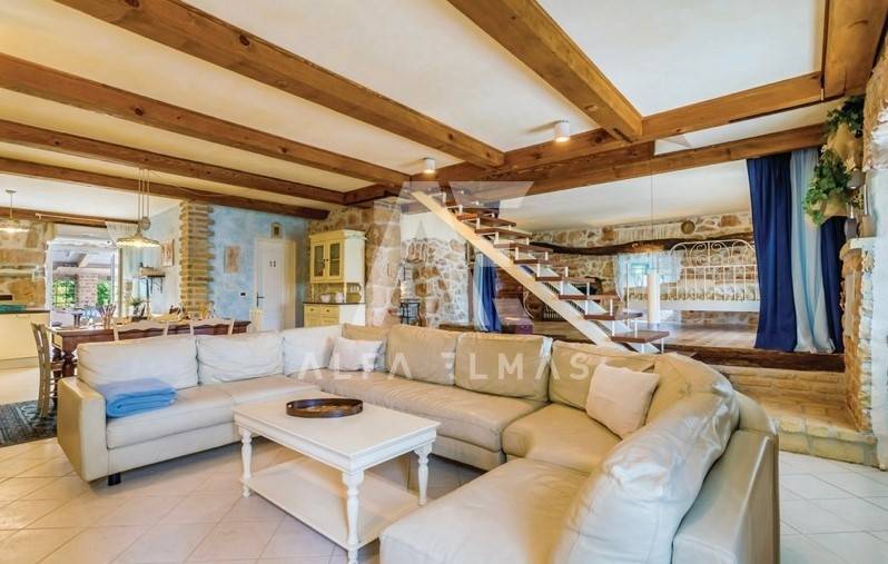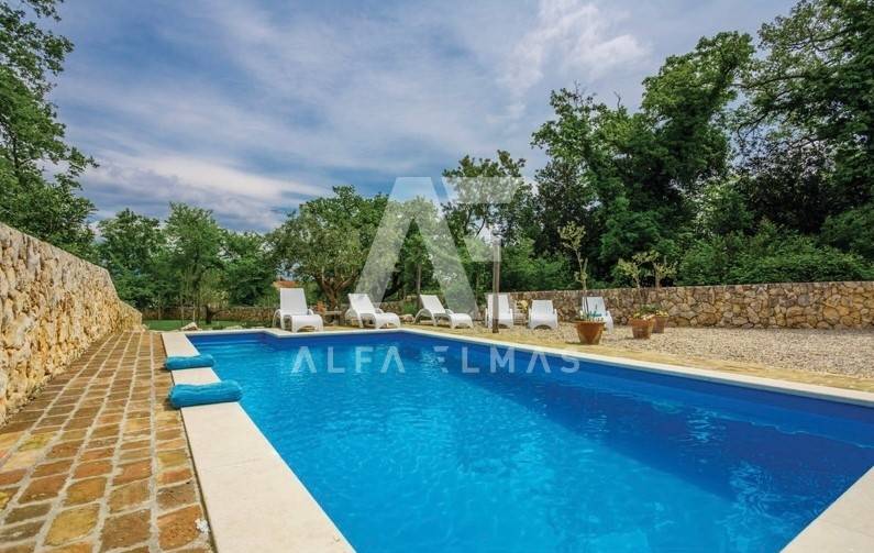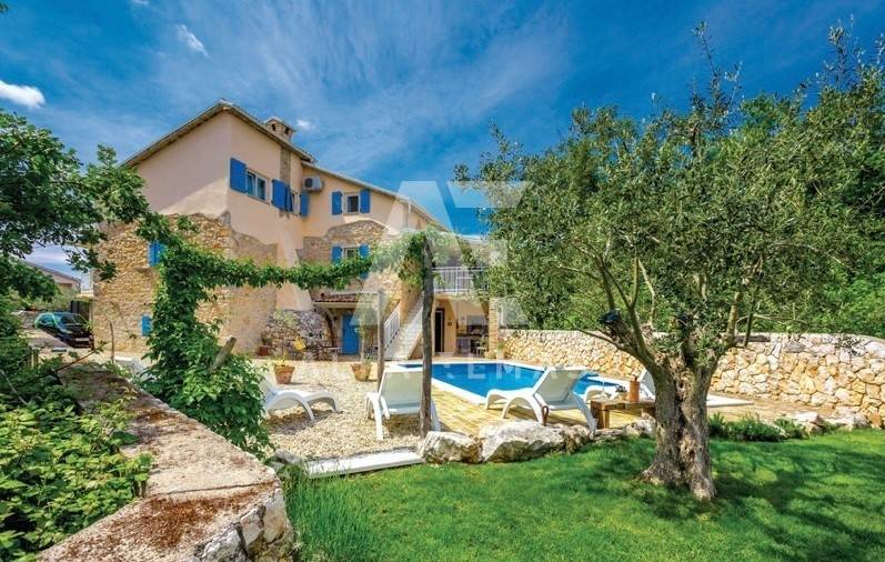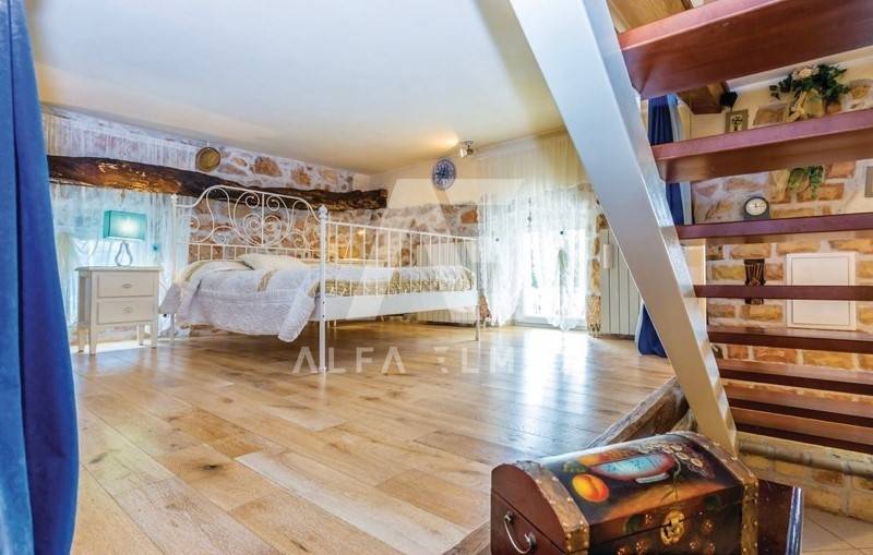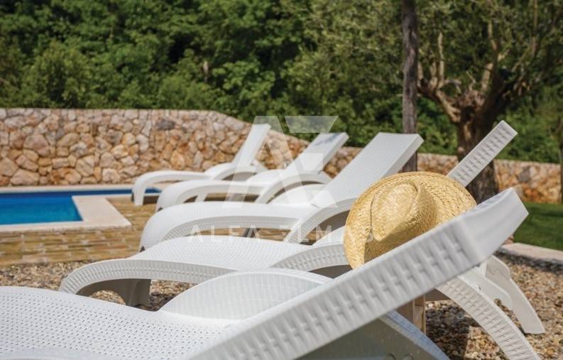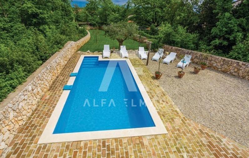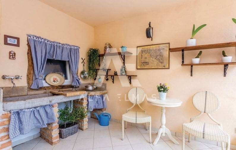 Šilo, surroundings, semi-detached stone house, only 2000m from the sea and beaches. The stone house consists of a total of 3 floors, living area 180m2. In the basement there is a kitchen, a bathroom and a technical room, as well as an original stone press (toš) for the production of olive oil. An internal staircase leads to the ground floor, where there is a spacious living room decorated with rustic details, a fireplace, a kitchen, a dining room and a bedroom. From the living room there is an exit to the covered terrace and the sunbathing area, where there is a large swimming pool. On the first floor there are three bedrooms and one bathroom. The semi-detached house contains 1,100 m2 of landscaped garden with Mediterranean plants and parking space for a total of 4 vehicles. The house is located near all amenities. The documentation is in order.