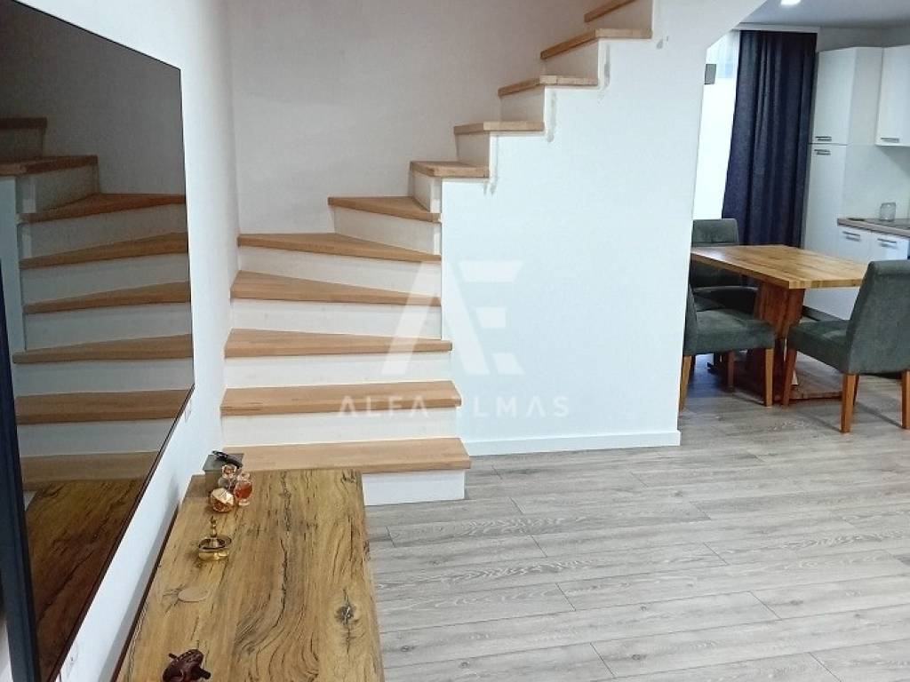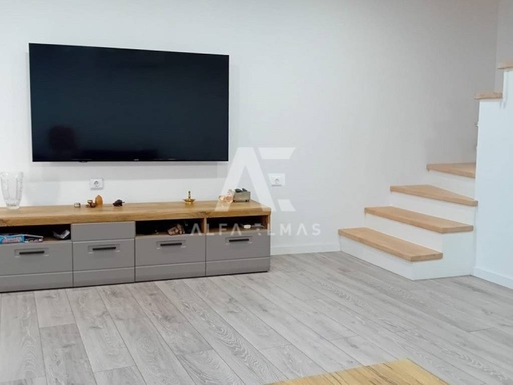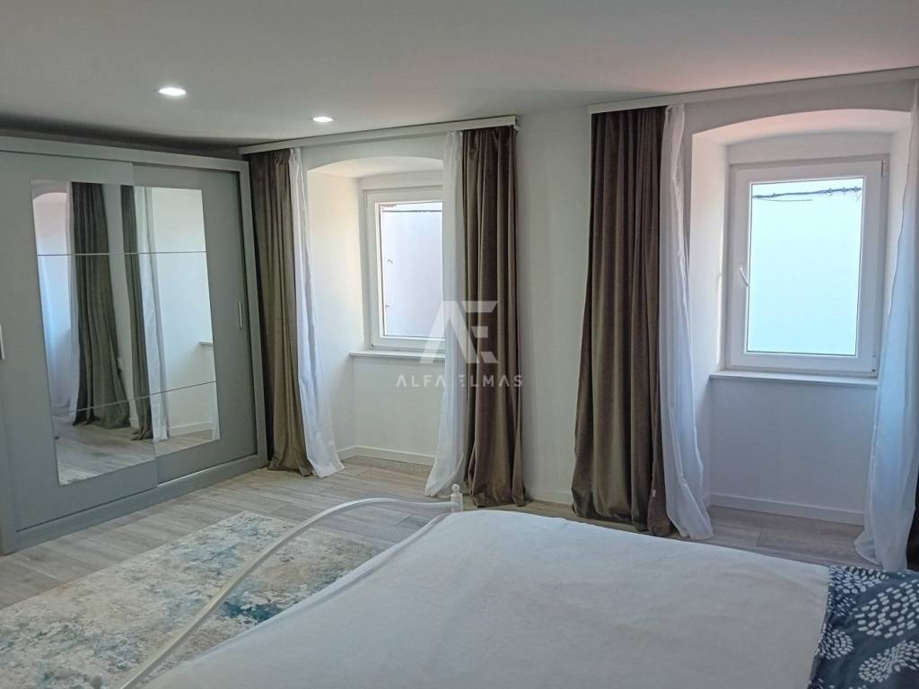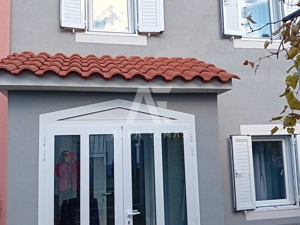 Omišalj, stone terraced house built in 1906 and completely renovated in 2023. The house has two floors, ground floor and first floor. On the ground floor there is an entrance hall, a large comfortable living room, a kitchen with a dining room, a bathroom and a storage room. From the kitchen there is an exit to the outdoor terrace. Internal wooden stairs lead to the first floor of the house, where there are two bedrooms, and a staircase leading to the attic space. There is a 49m2 garden on the landscaped garden. The house is in a great location, close to all amenities. Only 400 m from the sea! Furniture is included in the price. The documentation is in order.