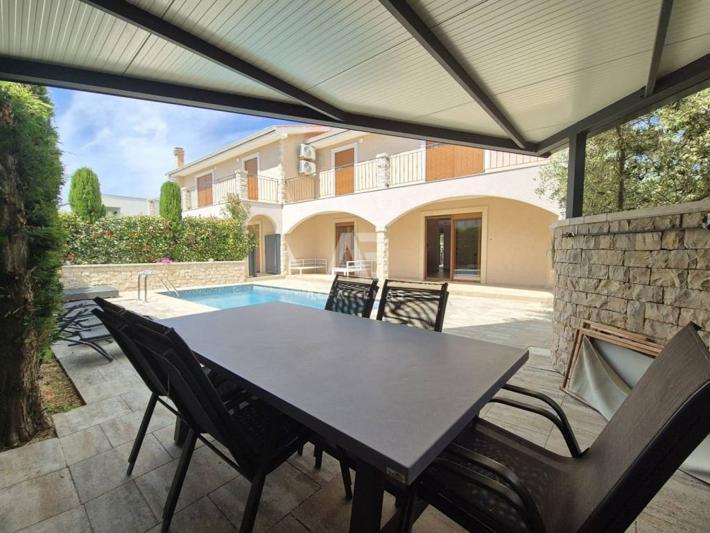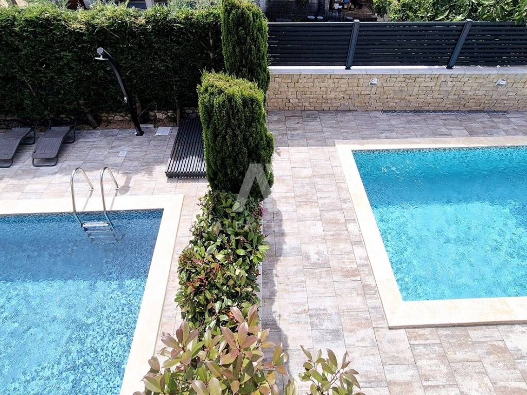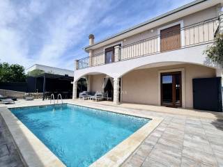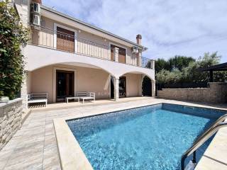 For sale is an exclusive detached property located in a peaceful and attractive area near Krk. The property has a total net area of 350 m² and consists of two completely separate residential units, each with its own private entrance, swimming pool, and part of the garden, ensuring complete privacy and comfort.