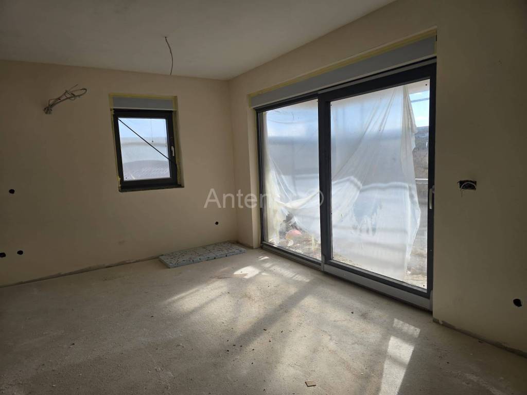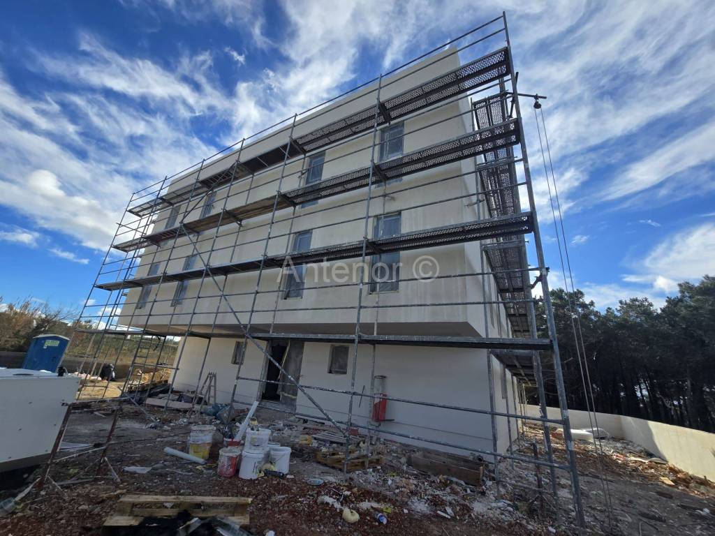 PRIVLAKA - prodaje se stan S1- jednosoban stan u prizemlju ukupne površine 67,18m2. Stan se sastoji od kuhinje s blagovaonicom i dnevnim boravkom, predsoblja, kupsonice, jedne spavaće sobe, spremišta, te natkrivene terase. Stanu pripadaju i dva parkirna mjesta i vrt. Stan ima podnogrijanje u svim prostorijama (grijaći kabel u estrihu) i klima uređaj u dnevnom boravku i sobi. Udaljenost od mora i centra mjesta je oko 1km. Zgrada je u završnoj fazi radova (unutarnji radovi, fasada). Stan je novogradnja, a predviđeni rokuseljenja je 1.lipnja 2026.