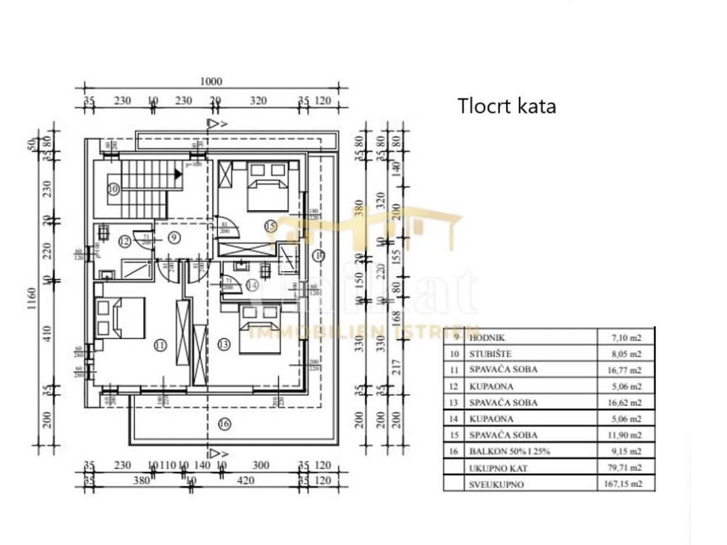 Al primo piano ci sono tre camere da letto, di cui una con bagno privato, mentre le altre due camere condividono un bagno accessibile dal corridoio. Tutte le camere da letto hanno accesso al balcone parzialmente coperto.