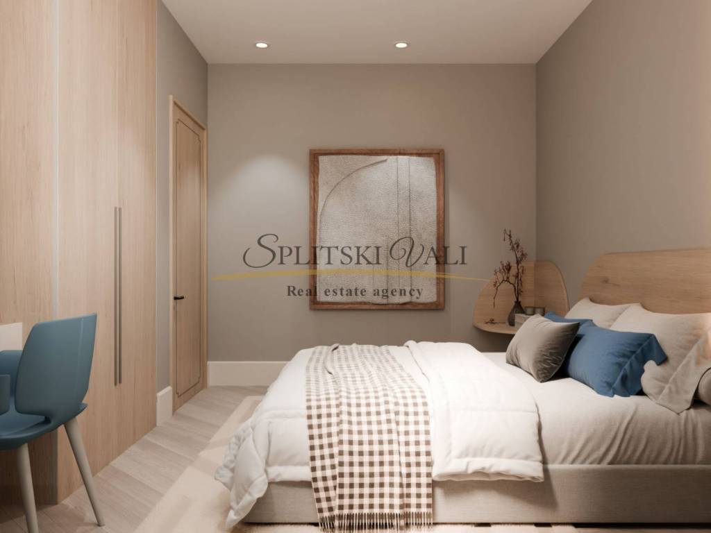 Stan se sastoji od hodnika, dvije spavaće sobe, kupaonice, zasebnog WC-a, kuhinje s blagovaonicom te dnevnog boravka s izlazom na loggiu površine 8,40 m. Tlocrt stana priložen je u sklopu oglasa.