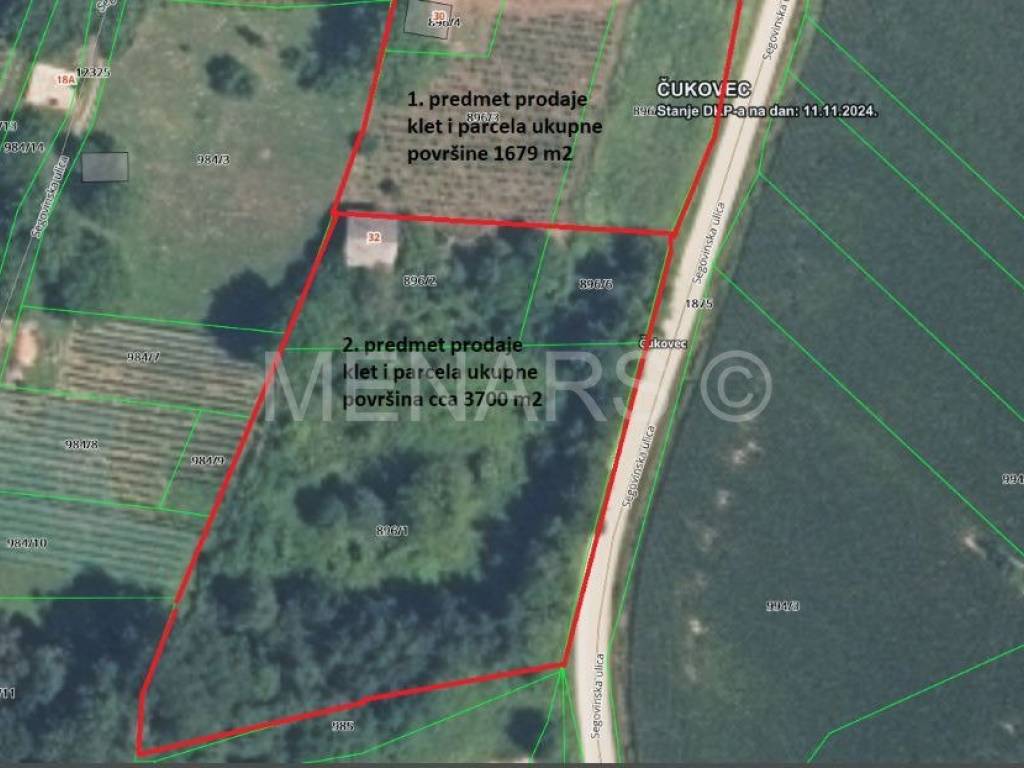Izgrađena vikend kuća (klijet) je tlocrtne površine cca 50 m2, na 2 etaže, nalazi se na parcelama ukupne površine 3699 m2. U zemljišnim knjigama su upisane šuma, oranica i vinograd, ali bez klijeti (izgrađene građevine).