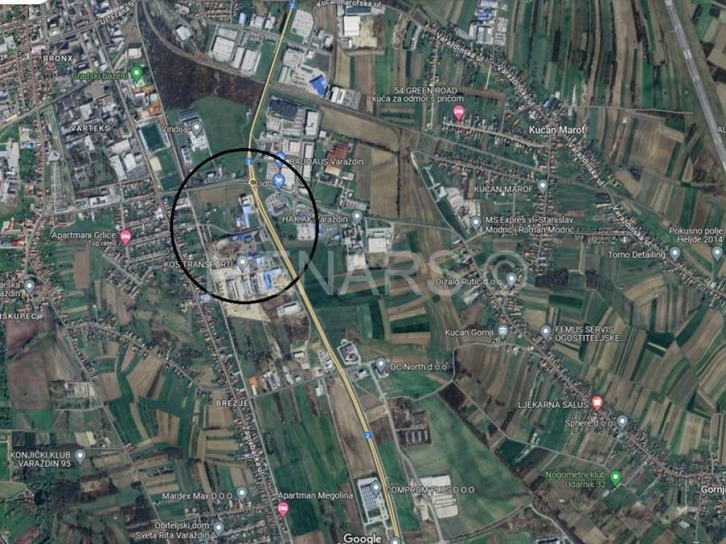 Povoljna prometna lokacija. Zemljište pogodno za gradnju svih vrsta poslovnih građevina.