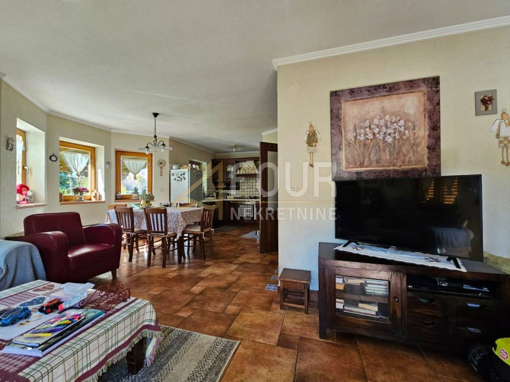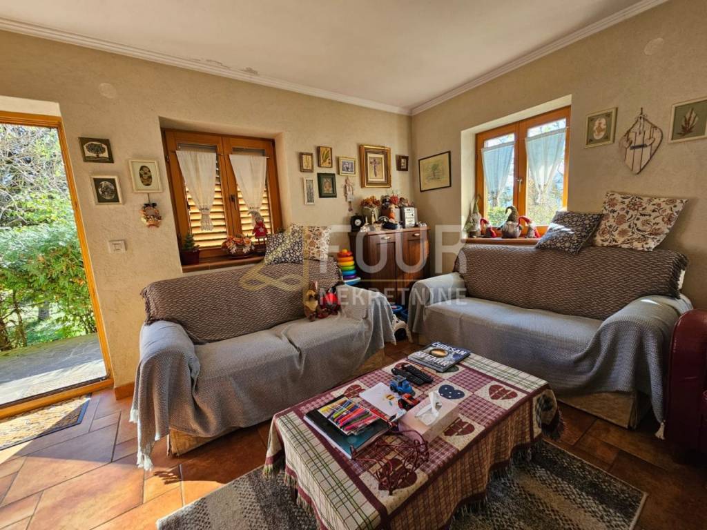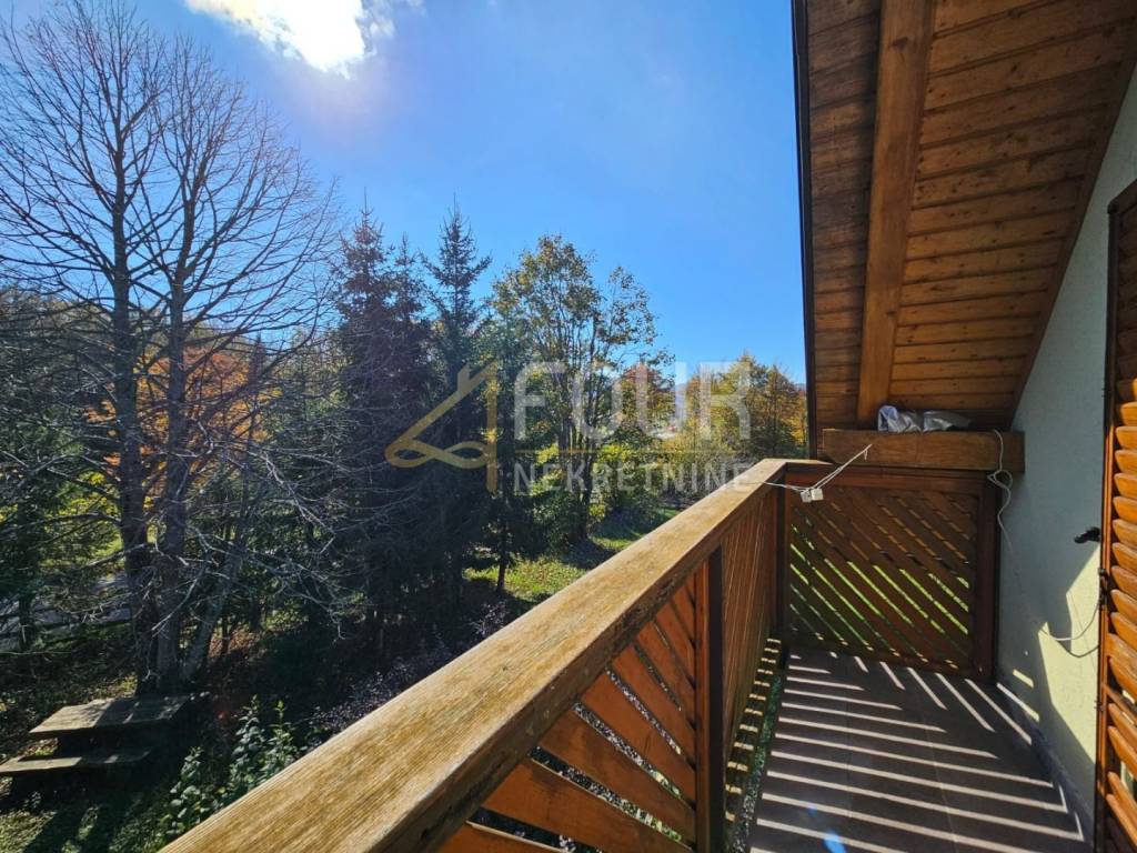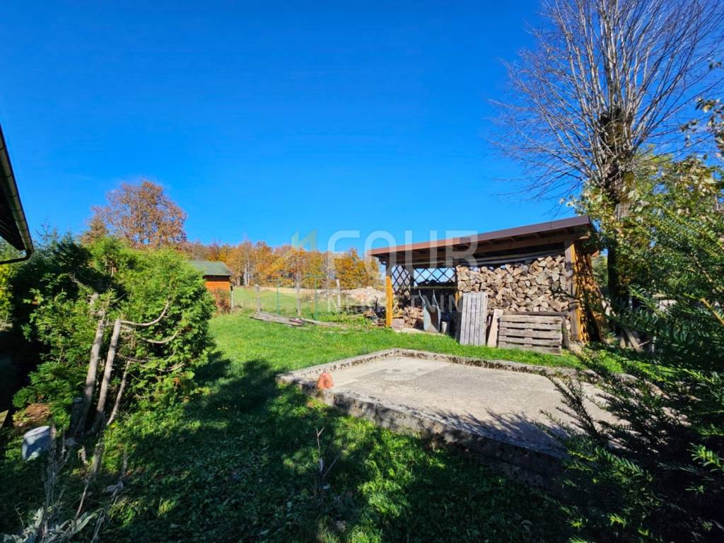 In vendita una casa indipendente nel Gorski Kotar, situata su un ampio terreno di 2146 m², con una superficie abitabile totale di 260 m², suddivisa su due piani.