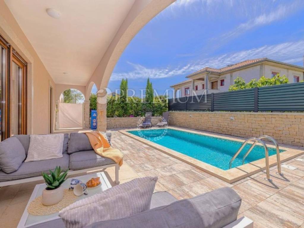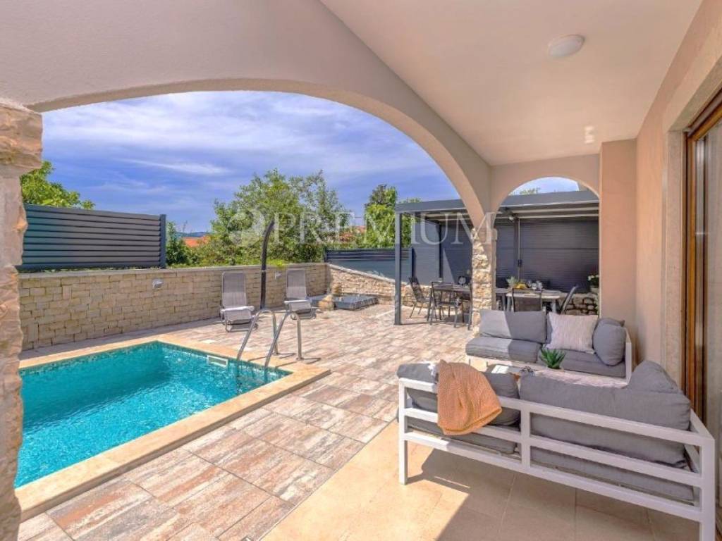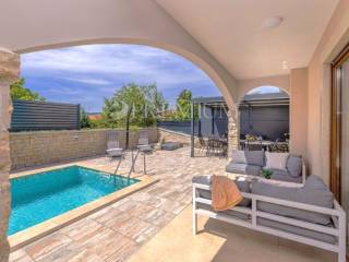 Nei dintorni della città di Krk è in vendita una splendida casa indipendente, completamente arredata, con due unità abitative separate, piscine private e vista mare.