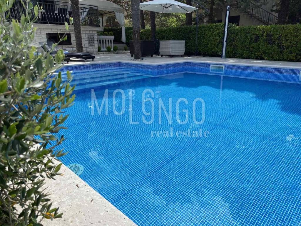 Nel seminterrato della casa si trova una cucina estiva dotata di tutti gli elettrodomestici necessari e una terrazza coperta con barbecue, ideale per godersi la preparazione dei pasti all'aperto. Il cortile della casa è ben curato e si estende su una superficie di 577 m². La caratteristica principale del cortile è una spaziosa piscina di 40 m², che offre un rinfresco e la possibilità di godere della privacy.