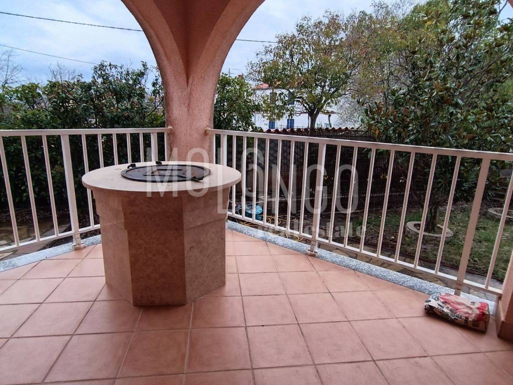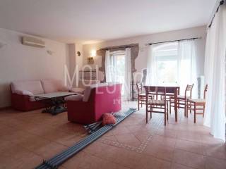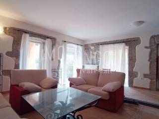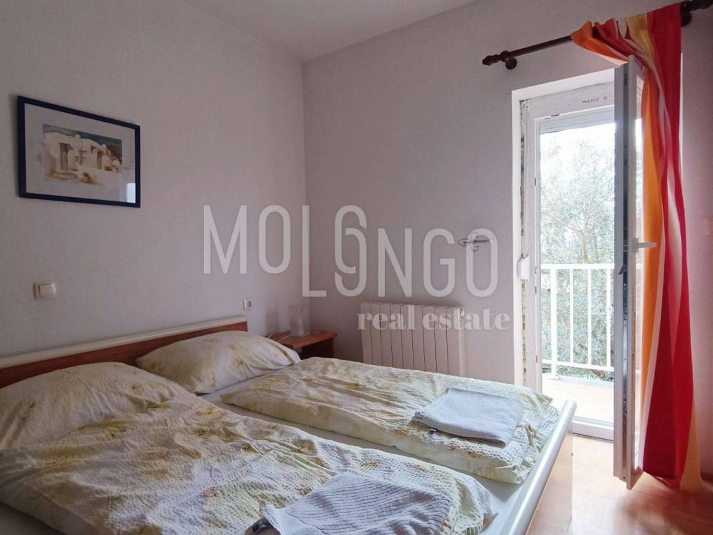 Nel centro di un piccolo paese vicino alla città di Krk, a soli 900-1000 metri dal mare, appartamento 2 camere da letto + soggiorno 85m2. Si trova in un edificio molto curato con un totale di quattro appartamenti, dispone di due posti auto all'interno di un bellissimo giardino comune paesaggistico, dove si trova un grande barbecue con terrazza e una piscina. L'appartamento si trova al piano rialzato ed è composto da un ingresso, una cucina con sala da pranzo e un soggiorno con accesso a due bellissimi terrazzi coperti, un bagno e due camere da letto, una delle quali ha accesso al proprio terrazzo. L'appartamento dispone anche di un ripostiglio di 10 mq al piano terra. Un appartamento molto ordinato e spazioso, tutta la falegnameria esterna è nuova, viene venduto arredato e pronto per essere abitato, senza ulteriori investimenti richiesti. Il riscaldamento è centralizzato con gasolio + aria condizionata. La proprietà è ideale sia per uso abitativo che per locazione turistica.