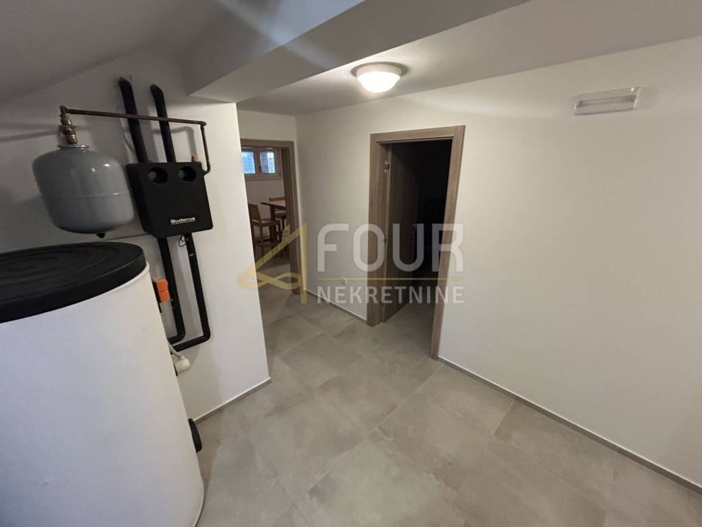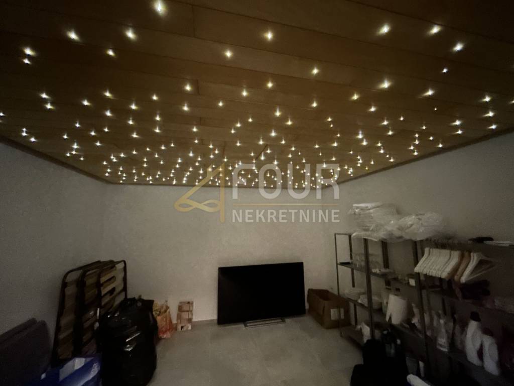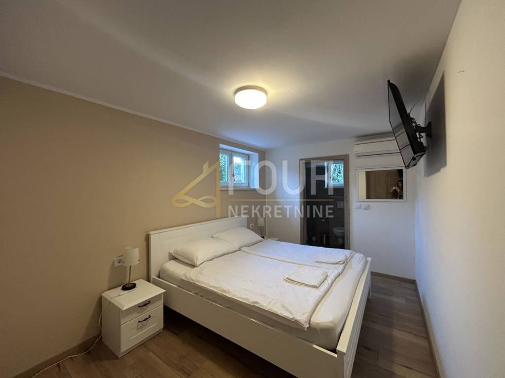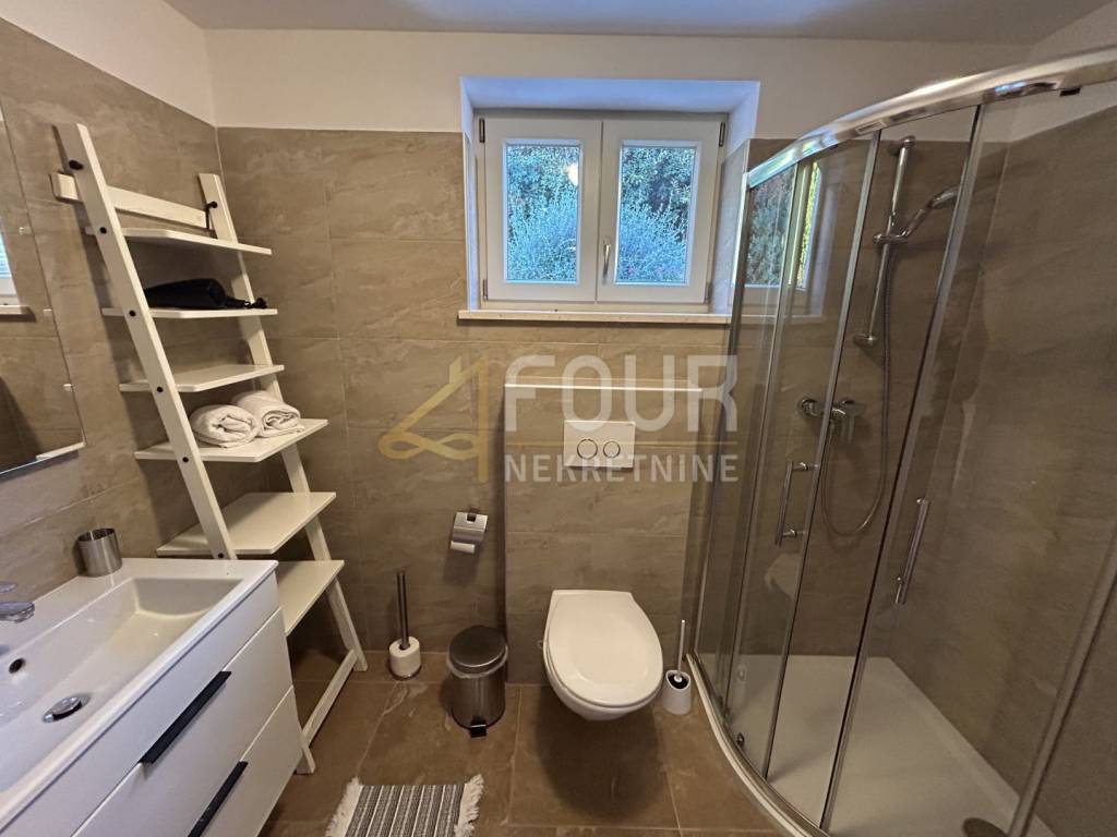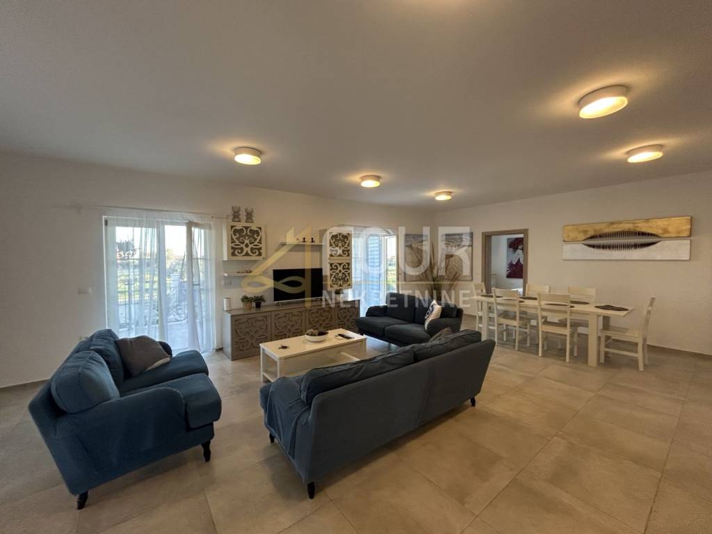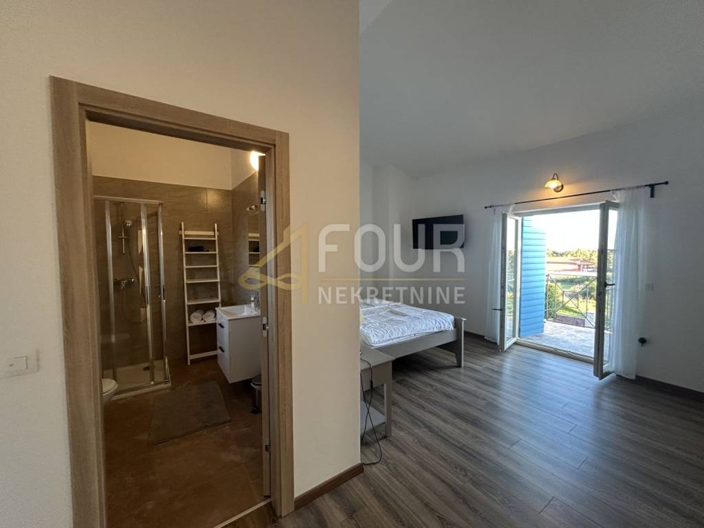 Non lontano da Barbana, si vende una casa indipendente di moderna architettura mediterranea, costruita nel 2013. Situata su un ampio terreno di 836 m2 con giardino curato, piscina e più posti auto.