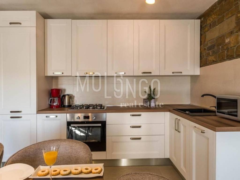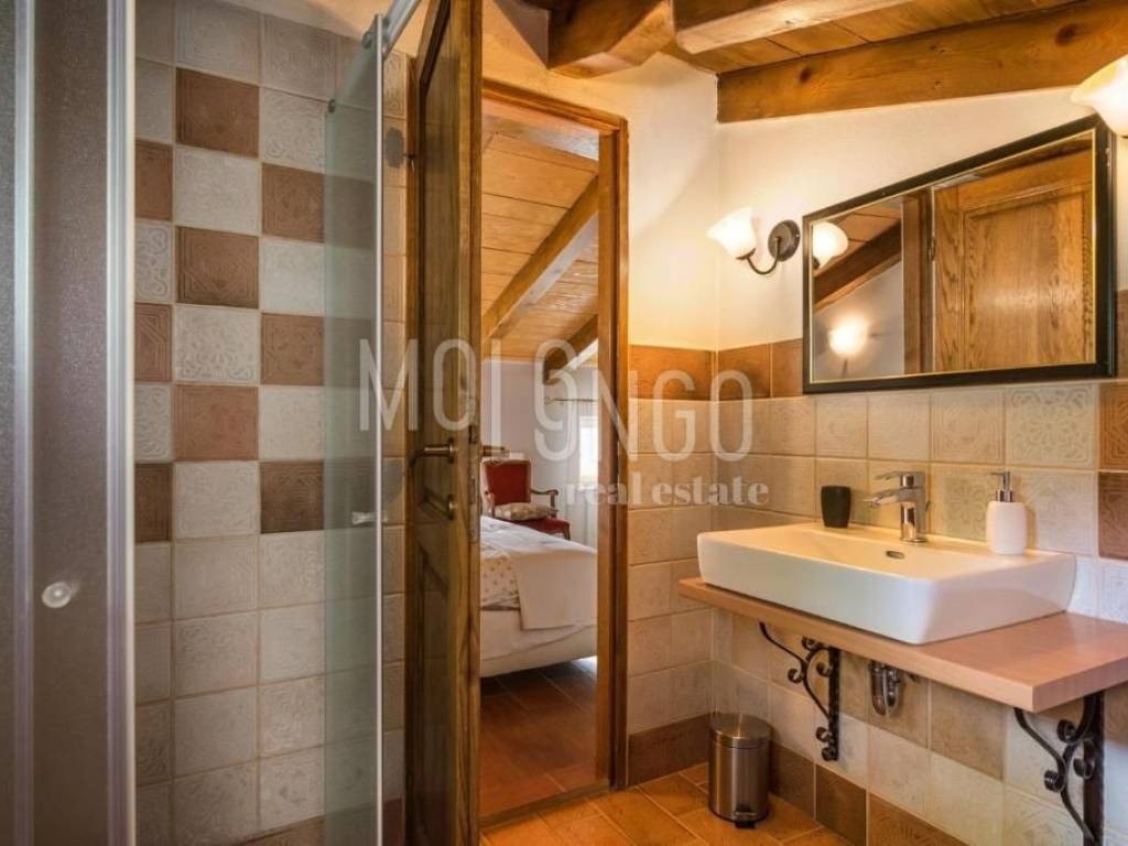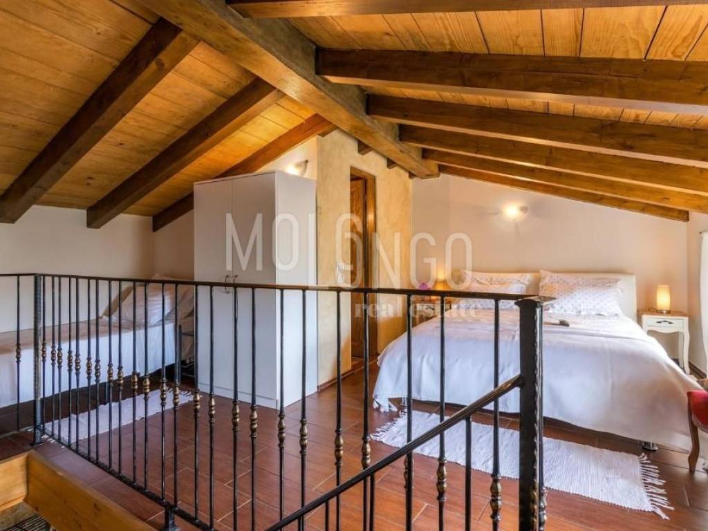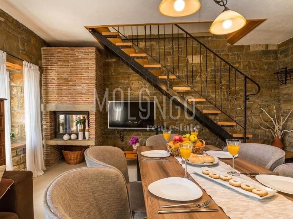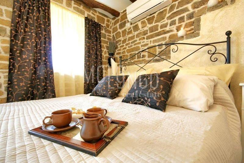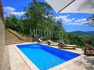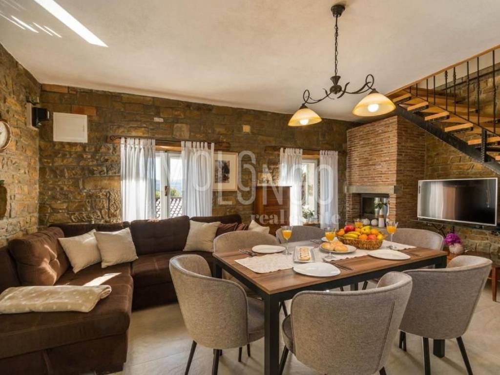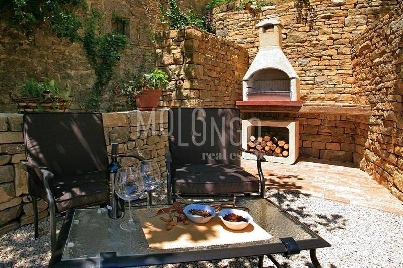La casa dispone di 2 camere da letto, 2 bagni, una cucina con soggiorno, una terrazza con vista aperta su Montona.