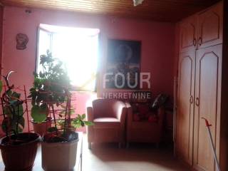 We offer a terraced house of 150m2 with a yard of 125m2. The house is divided into three floors - ground floor, first floor and high attic. On the ground floor there is a tavern and a room, on the 1st floor there is a kitchen, a living room, a small room and a bathroom, while in the high attic there are two more rooms and a balcony. The ground floor has two entrances.