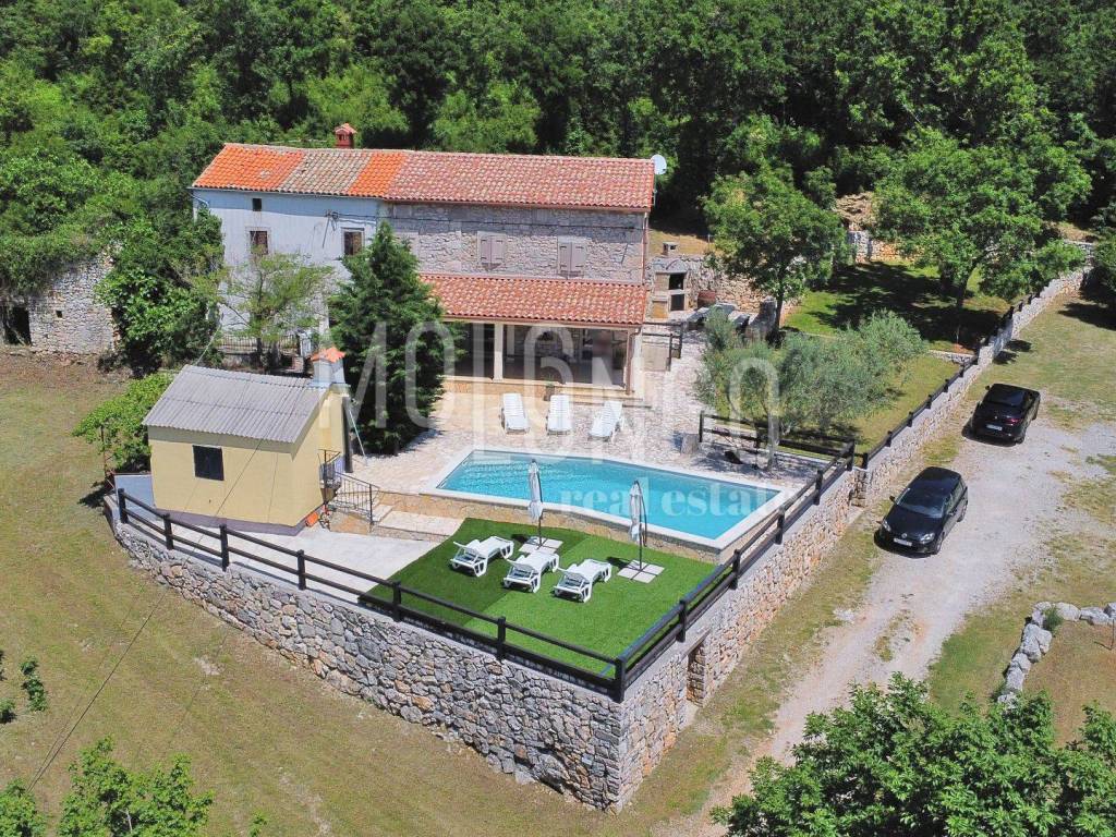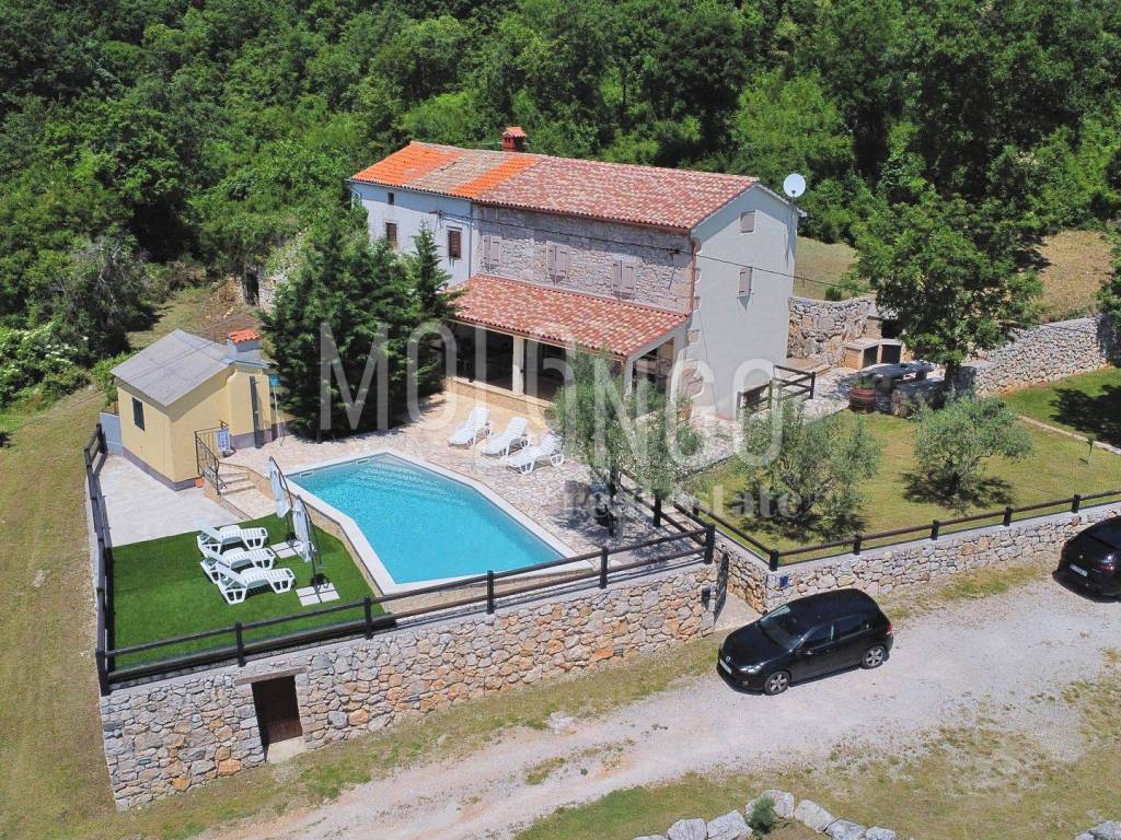 Si compone di una vecchia casa adattata e trasformata in casa per vacanze con piscina, una vecchia casa annessa da ristrutturare, una vecchia casa da ricostruire, un edificio ausiliario con un ampio garage e una taverna, un edificio ausiliario, una piscina e una sala biliardo con terrazza e un ampio giardino.