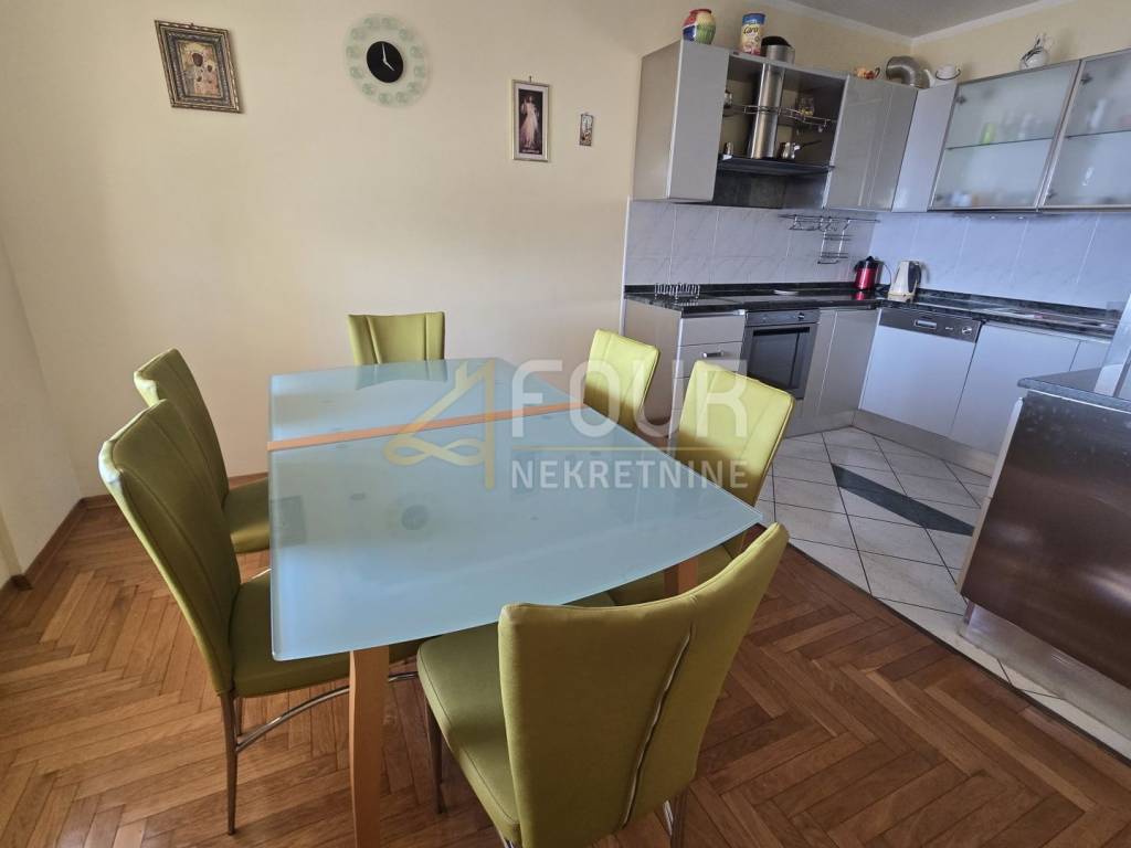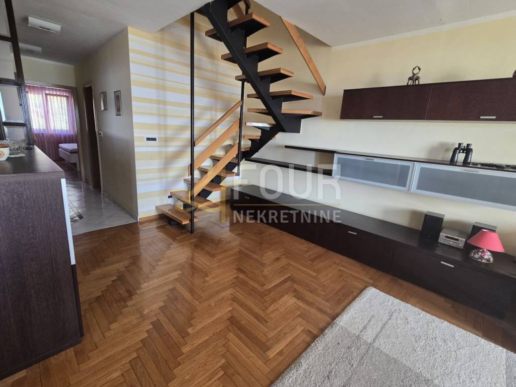 A Kostrena si affitta un appartamento duplex che offre spazi abitativi confortevoli e una splendida vista mare. Situato al secondo piano e mansarda di un edificio residenziale, è composto da un piano inferiore con soggiorno e cucina, una camera da letto, un bagno e una loggia, mentre il piano superiore comprende tre camere da letto, un ulteriore bagno e una terrazza. Con una superficie totale di 135,5 m², l’appartamento offre ampi spazi e, grazie all’esposizione sud–nord, molta luminosità e una ventilazione piacevole durante tutta la giornata.