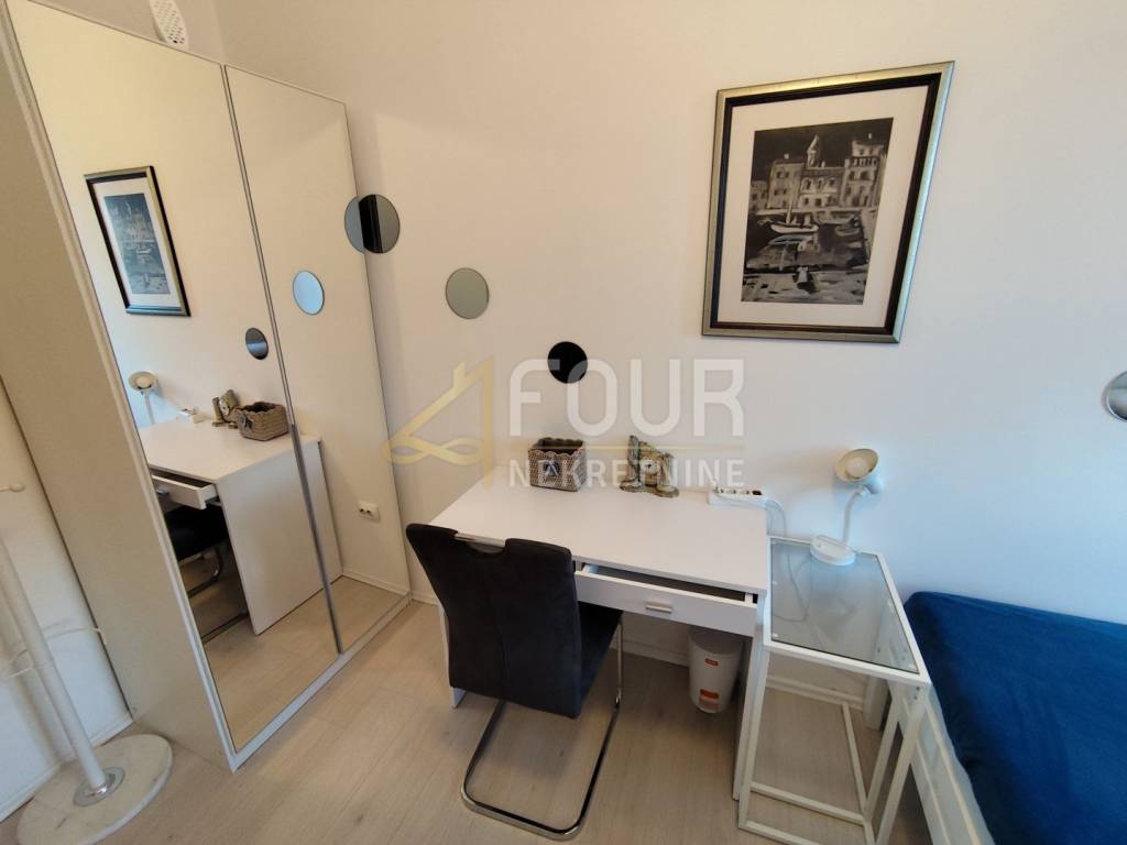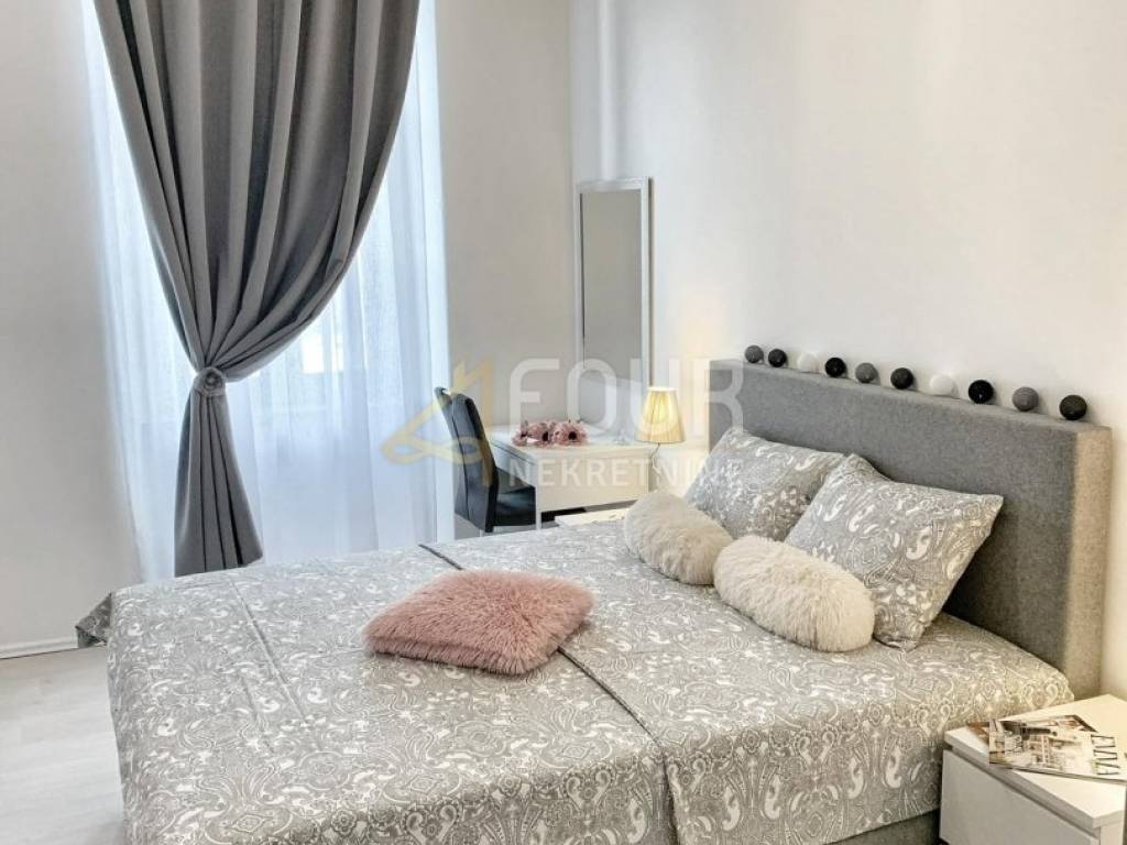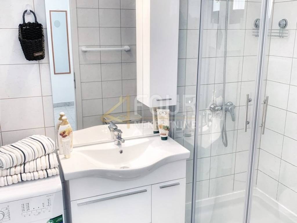 L'appartamento è composto da un lungo corridoio, un ingresso, due confortevoli camere da letto, un ampio soggiorno, una cucina separata, un bagno e un WC separato. È completamente arredato, ristrutturato e ben tenuto, e la disposizione complessiva offre un'eccezionale funzionalità e comfort.