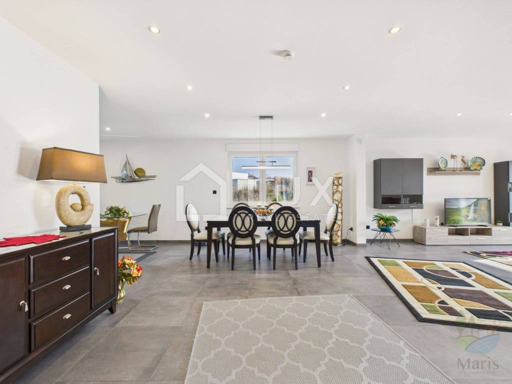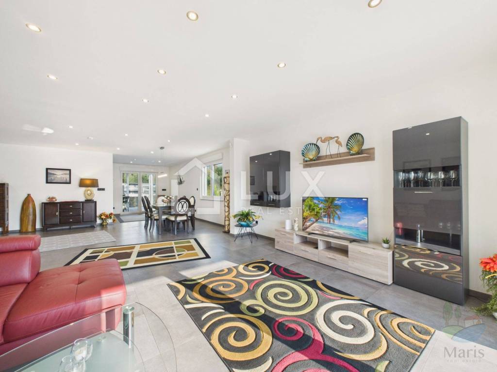 Questa casa contemporanea si trova in una delle zone più ambite di Medolino, offrendo il perfetto equilibrio tra stile di vita moderno e un soggiorno rilassante al mare. Immersa nel verde e situata in una strada tranquilla, è ideale per chi cerca una casa di qualità o un investimento sicuro per le vacanze e l'affitto.