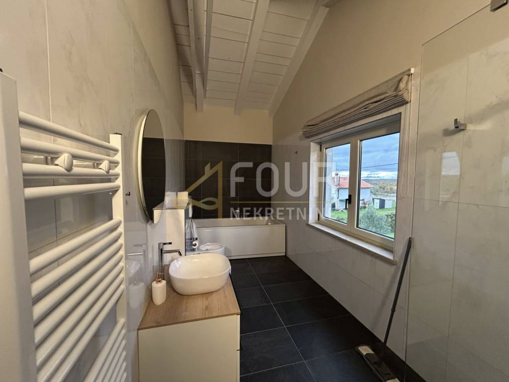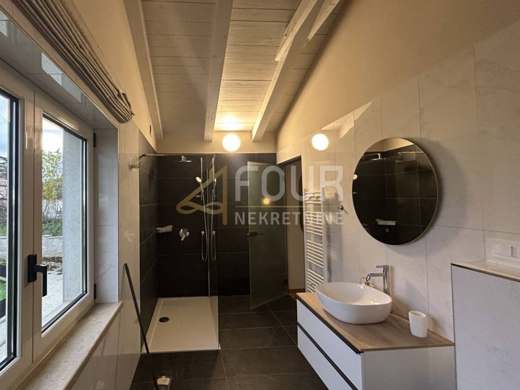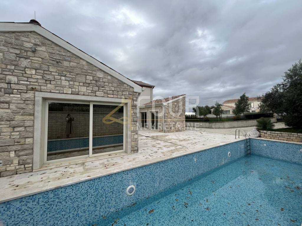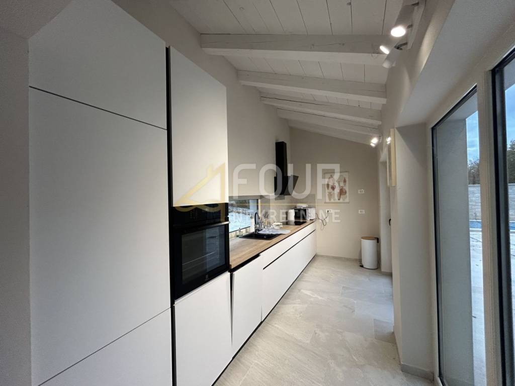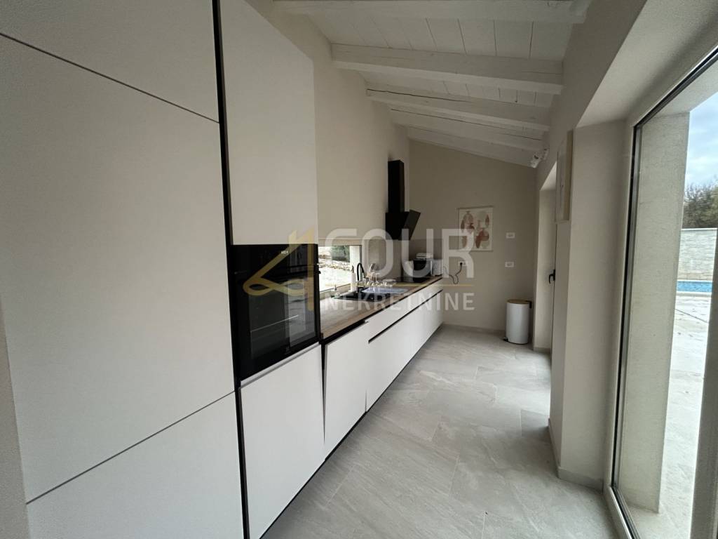 Si vende una splendida villa moderna in pietra situata in una posizione tranquilla nei dintorni di Visignano, con una magnifica vista sul mare in lontananza e a soli dodici chilometri da Parenzo.