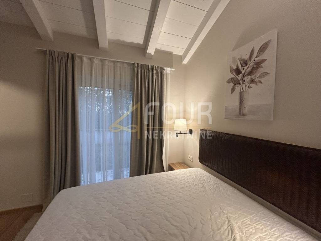 Al piano terra si trova un ampio soggiorno con sala da pranzo e cucina moderna, tutti con accesso diretto alla terrazza coperta. Allo stesso piano ci sono anche due camere da letto, entrambe con bagno privato, di cui una con accesso dal soggiorno. Ci sono anche un corridoio, uno spazio di stoccaggio, un bagno per gli ospiti, un'area lounge con accesso alla terrazza e una sauna che conferisce un'esperienza di benessere privato allo spazio. Al piano superiore ci sono altre due eleganti camere da letto, ognuna con il proprio bagno, di cui una con un balcone privato con vista sulla natura e sul mare.