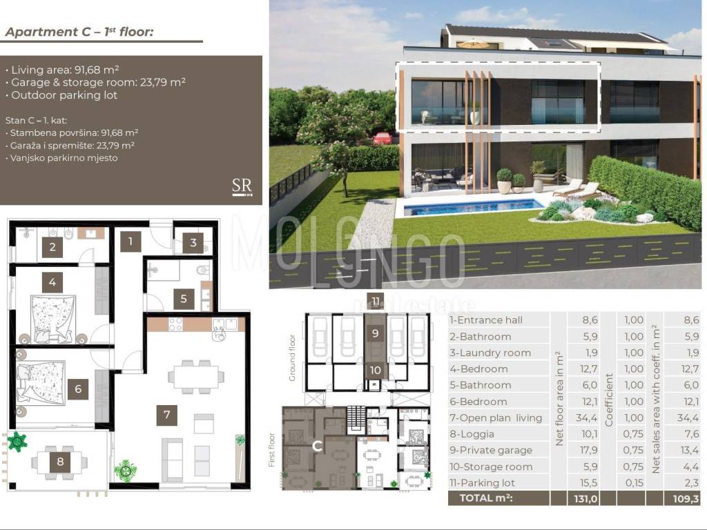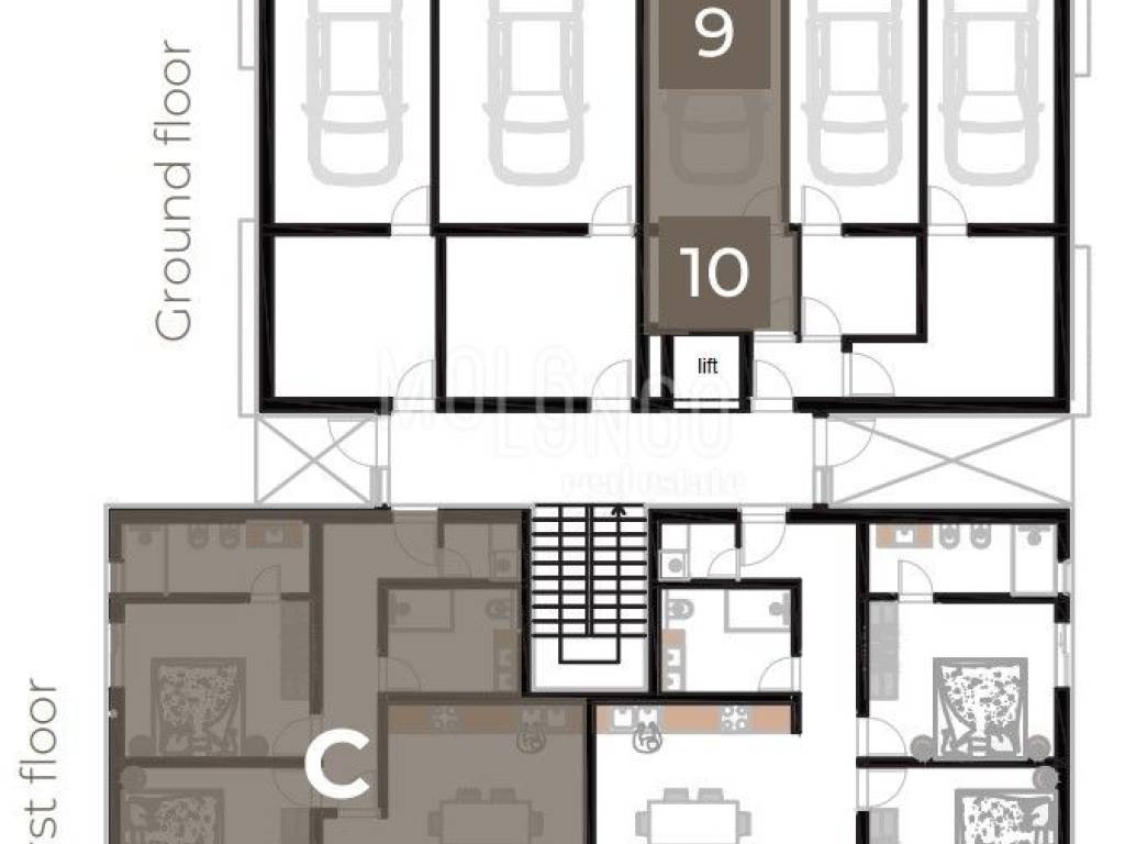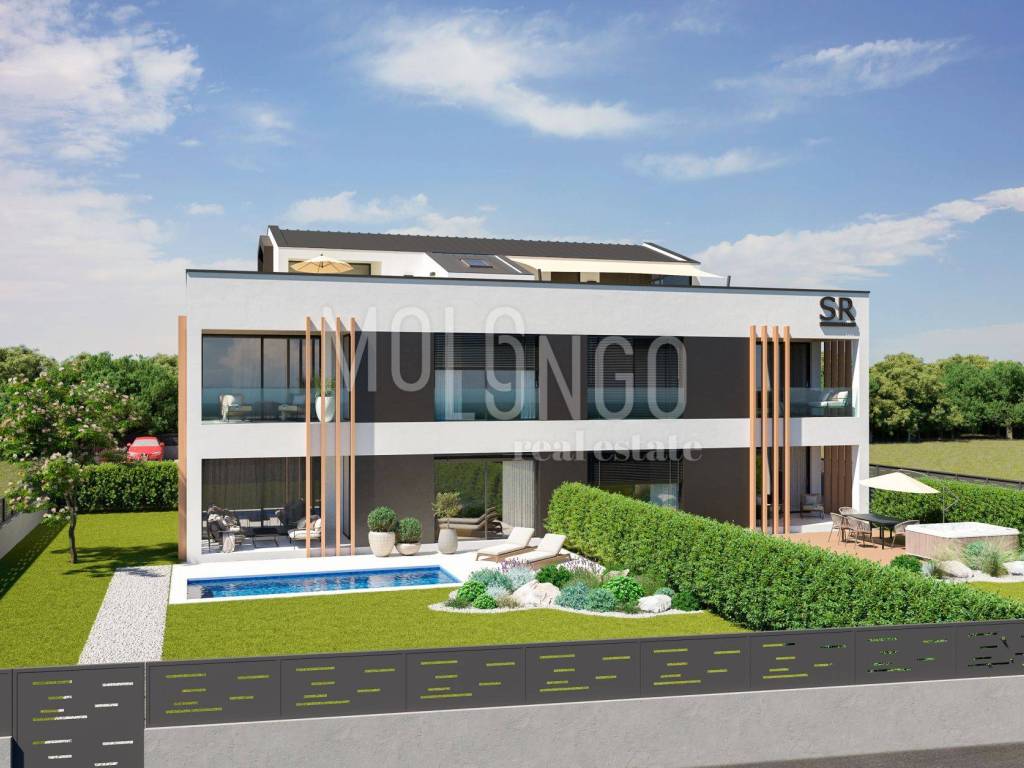 La villa urbana incarna sofisticatezza e semplicità ed è situata in una nuova zona residenziale, unica nel suo genere a Rovigno. È composta da sei appartamenti progettati con cura, di dimensioni che variano da 92 m² a 199 m², che offrono un perfetto equilibrio tra privacy, tranquillità e vita di lusso.
