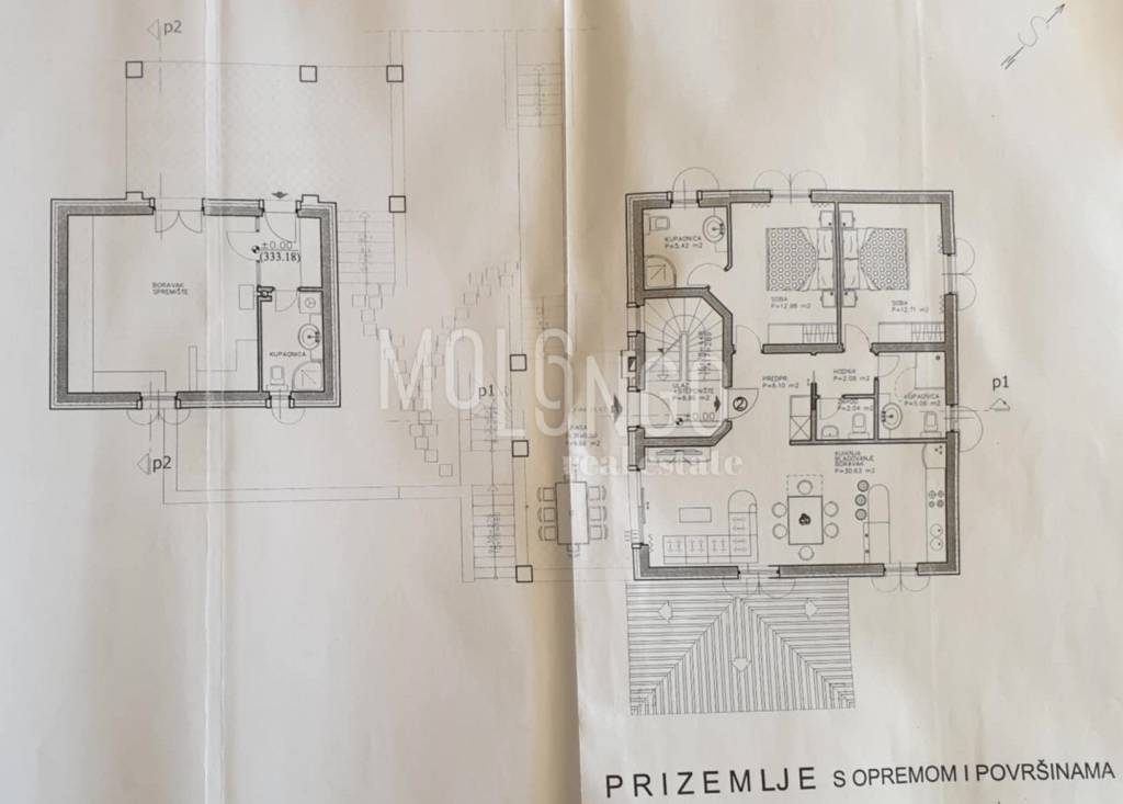 Casa principale (piano terra + 2) – in fase di costruzione grezza, con ingressi separati per ogni piano. Sono previsti tre appartamenti indipendenti di circa 75 m² ciascuno, offrendo un’ottima opportunità per un utilizzo plurifamiliare o per un'attività turistica.