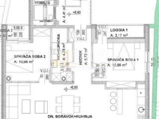 Superb new construction in an extremely attractive position - 1st row to the sea! This 96.42m2 penthouse has a fantastic view of the sea. It consists of a living room, kitchen and dining room in an open area with access to the balcony, two bedrooms with access to the loggia, hallway and bathroom. The building has an elevator and a garage parking space, and this apartment has two parking spaces.