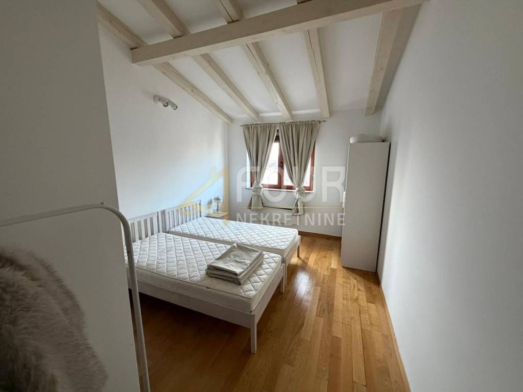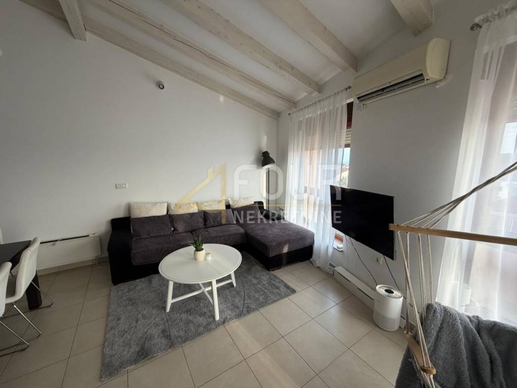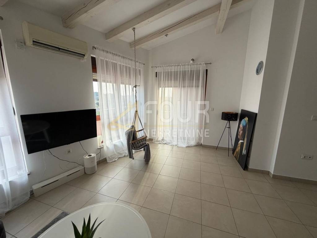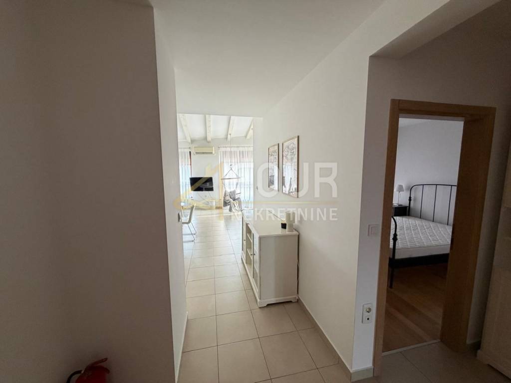 A Liznjan viene affittato un bell'appartamento su due livelli completamente arredato situato al secondo, nonché ultimo piano di un edificio di costruzione recente. L'appartamento è luminoso e ben organizzato: entrando a destra ci sono due camere da letto, una delle quali con bagno privato, mentre a sinistra c'è un bagno aggiuntivo. La parte centrale dell'appartamento è composta da un ampio soggiorno collegato alla cucina e alla sala da pranzo, da cui si accede a una terrazza con una vista molto bella e aperta. È piacevole soggiornarci durante tutto l'anno grazie all'aria condizionata e al riscaldamento elettrico con termosifoni, mentre i serramenti in PVC contribuiscono ulteriormente all'efficienza energetica. L'edificio dispone di una piscina in comune, e con l'appartamento si ha a disposizione anche un posto auto esterno. Nel seminterrato dell'edificio c'è un ripostiglio incluso. La posizione è estremamente attraente - il mare è a pochi minuti a piedi, e l'ambiente è tranquillo e piacevole per vivere. È ideale per affitti a lungo termine per chi cerca tranquillità, comfort e vicinanza al mare in un edificio residenziale di qualità.