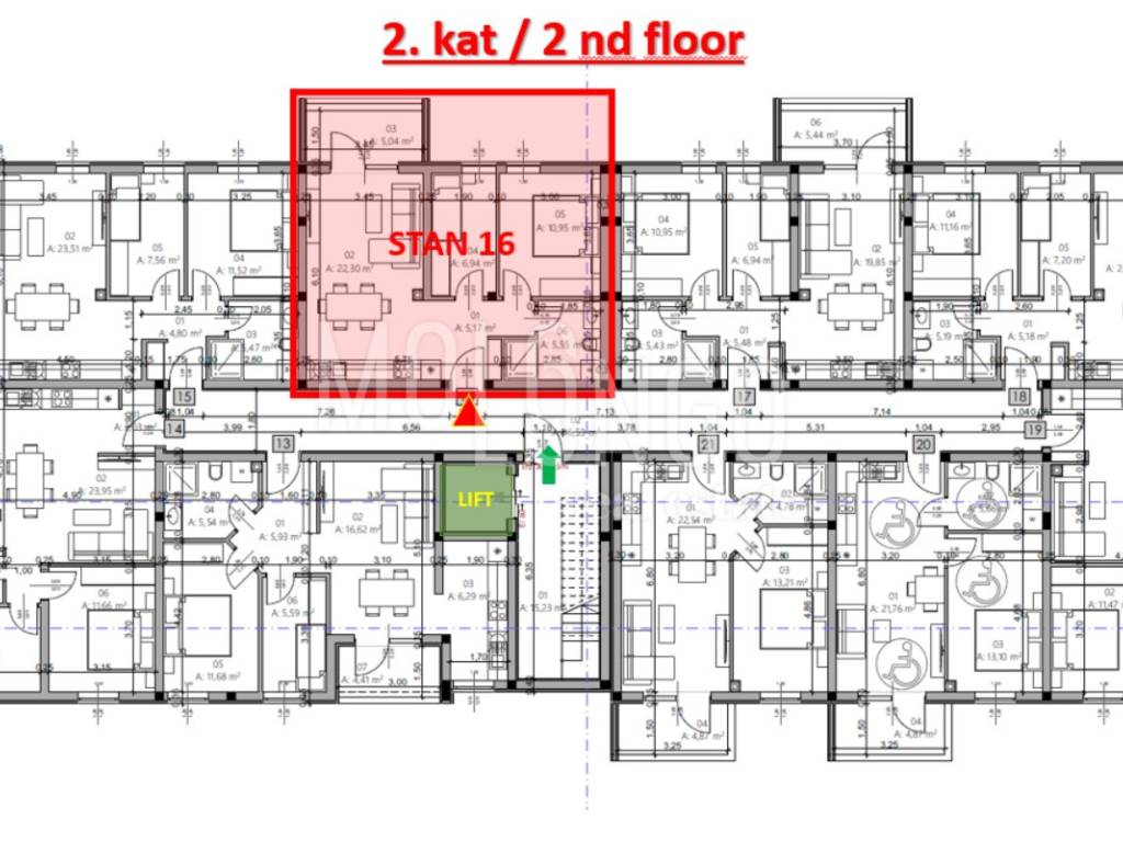 In vendita appartamento n. 14 in un nuovo progetto residenziale nel quartiere Monvidal a Pola, situato nell’edificio B, al 2° piano di una moderna palazzina con ascensore.