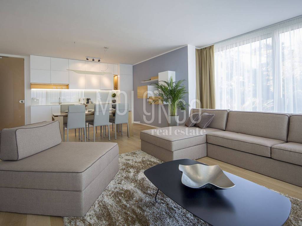 Vendiamo appartamento in un edificio di nuova costruzione con garage sotterraneo, ascensore e piscina. Questo bellissimo appartamento di 122,60 m2 offre una perfetta combinazione di funzionalità e design elegante. Si compone di un soggiorno confortevole e luminoso con accesso ad un ampio terrazzo, una moderna cucina con zona pranzo, due comode camere da letto, un disimpegno, due bagni ed uno spazioso terrazzo ideale per il relax e il divertimento. L'appartamento dispone di 1 posto auto in garage e un ripostiglio. Si trova a soli 120 metri dal mare. L'edificio dispone di una piscina condominiale con zona solarium ad uso esclusivo. Questo appartamento è una proprietà ideale per vivere o come residenza nella bellissima Abbazia.
