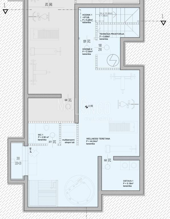 Una particolarità di questo appartamento è anche un'area benessere privata nel seminterrato dell'edificio, che consiste in una palestra e una sauna.