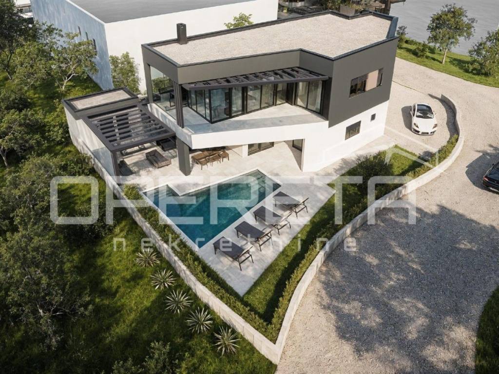 A beautiful modern villa is for sale located in a rare and extremely attractive location near the center of Vodnjan, on the very edge of the construction zone, surrounded by olive groves and untouched nature.