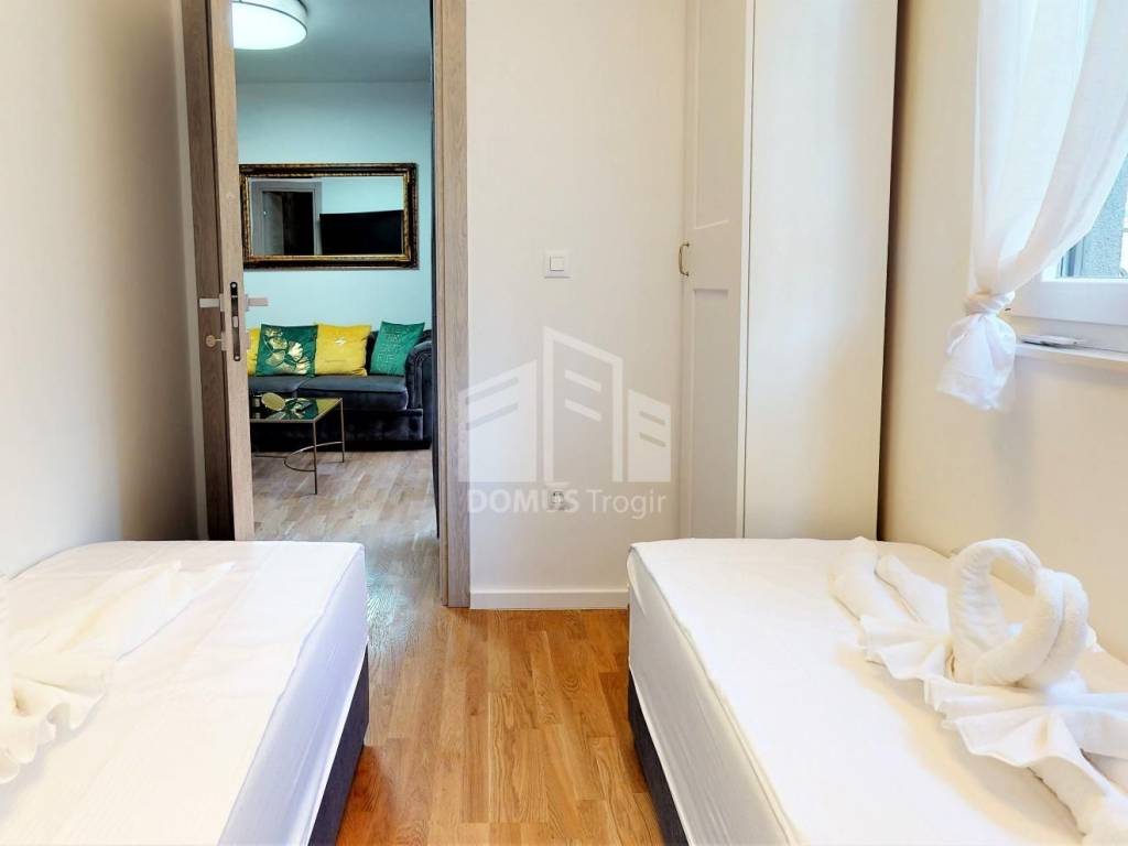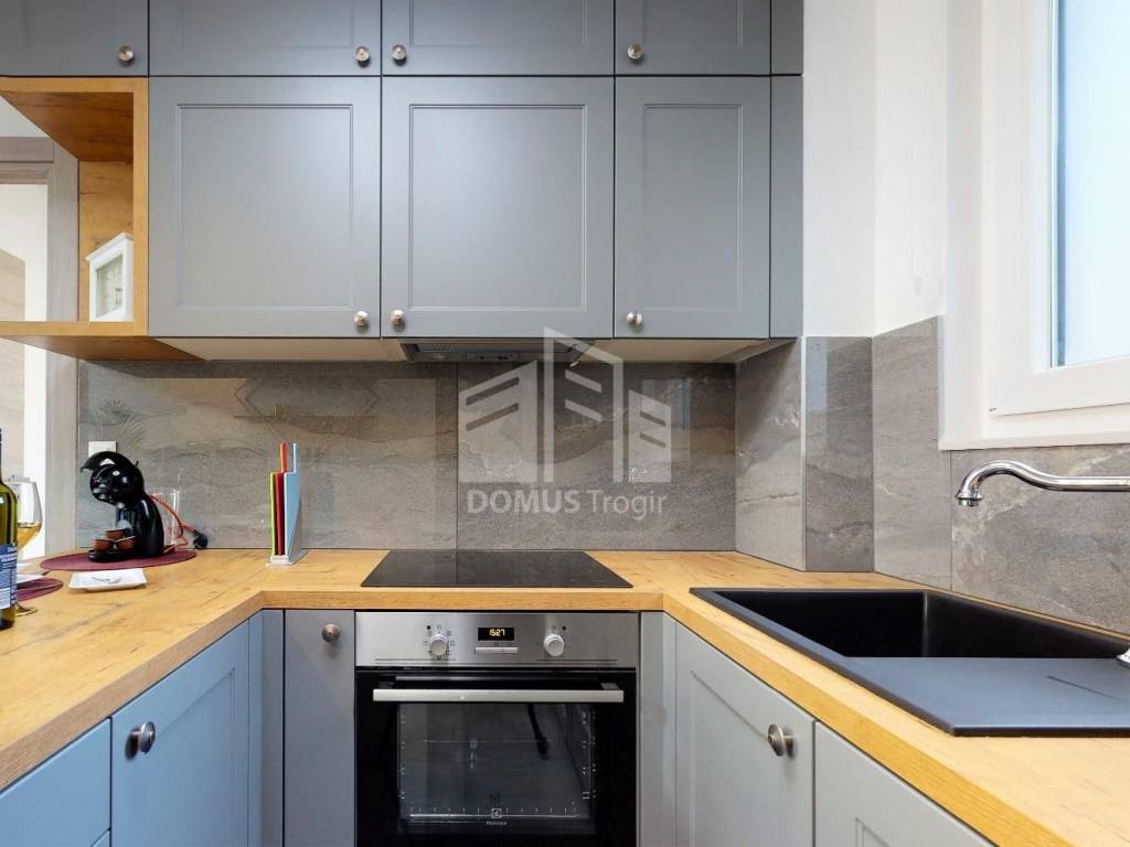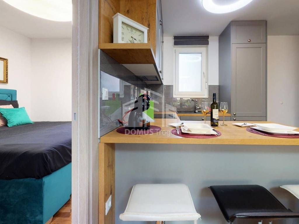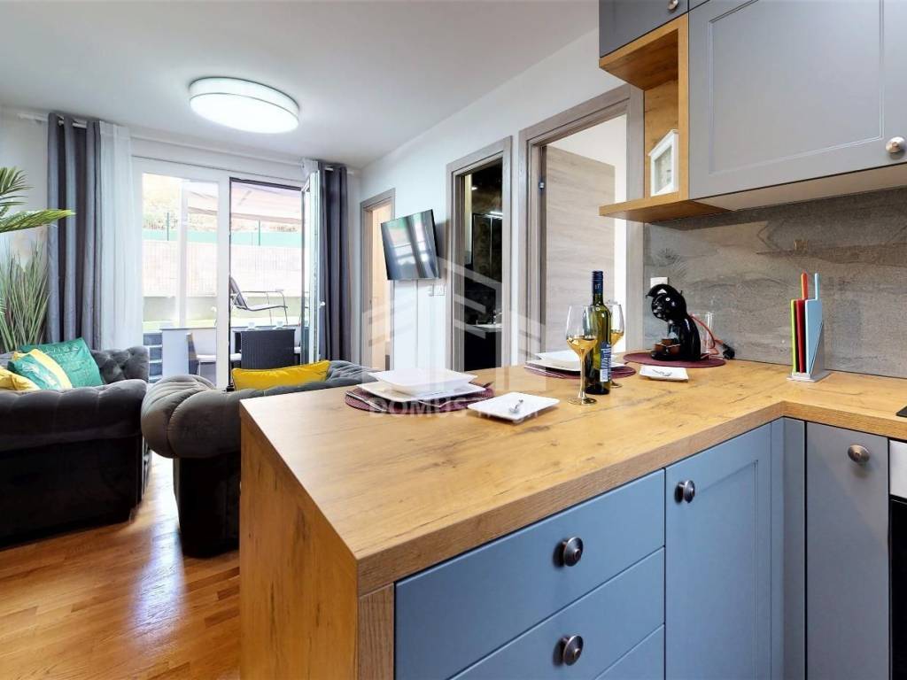 We are offering for sale a two-bedroom apartment in the basement of a residential building in Mejaši. The apartment consists of a hallway, living room with kitchen and dining room, bathroom with toilet, two bedrooms, as well as a terrace. The interior area of the apartment is 36.67 m2, the terrace is 2.50 m2, and the garden is 20.16 m2. It comes with a garage parking space of 12.82 m2. The apartment is being sold furnished. For more information, contact the agent.