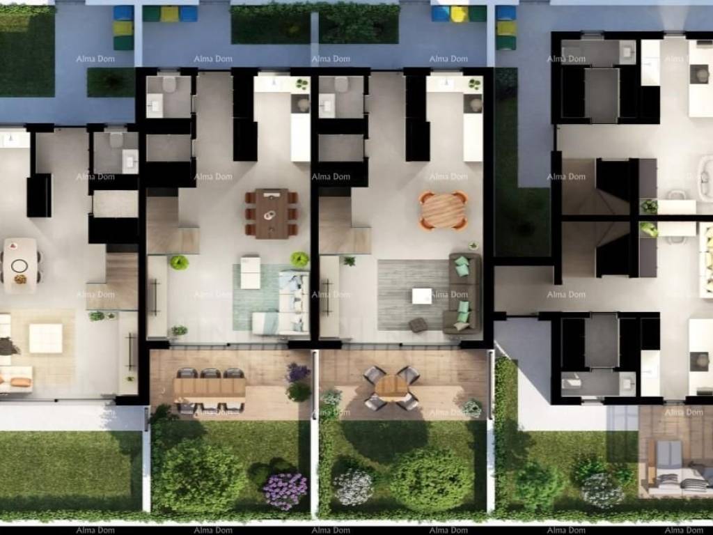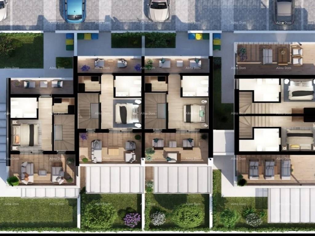 Vendiamo l"appartamento "B" su tre piani in un"ottima posizione a Parenzo!L"appartamento fa parte di un complesso di case a schiera dove ogni appartamento ha ingresso indipendente, giardino e parcheggio.Il piano terra è composto da cucina, sala da pranzo, soggiorno con accesso al terrazzo e giardino, wc e lavanderia.Le scale interne portano al primo piano dove si trovano due camere da letto e due bagni e guardaroba e alla mansarda dove si trova un"altra camera da letto, bagno, guardaroba e terrazza panoramica.Riscaldamento a pavimento in tutte le stanze, aria condizionata, due posti auto.Gli appartamenti vengono venduti chiavi in mano.C"è anche la possibilità di acquistare in fase Rohbau alta con facciata e finestre.Siamo a disposizione per ulteriori informazioni:Informazioni: Azra Valjevac +385 91 611 5706E-mail: azra@almadominvest.comContatto: Gojko Đurković +385 95 4700000E-mail: gojko@alma-nekretnine.com