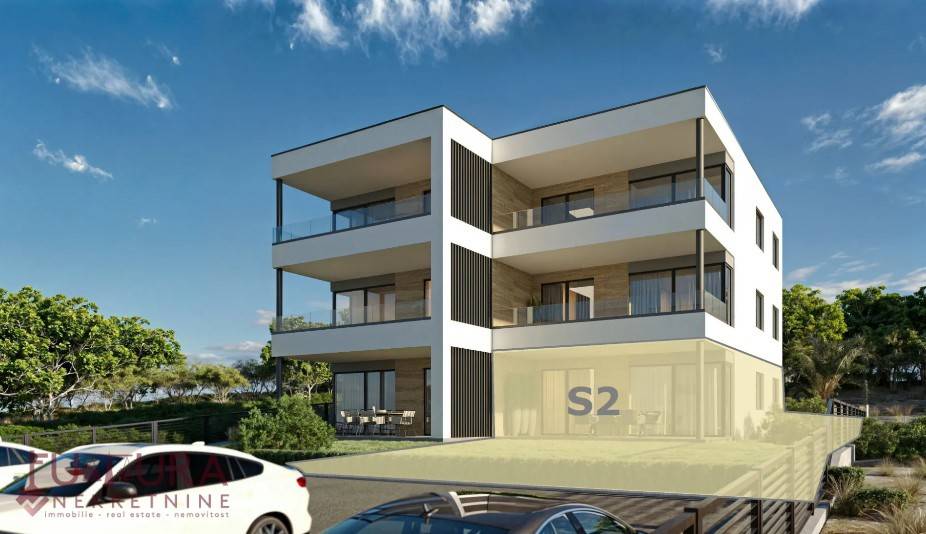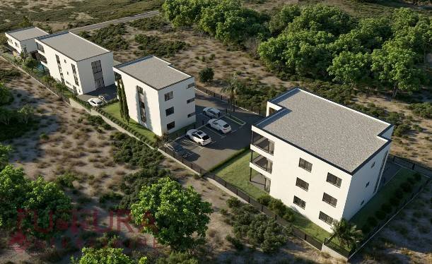 Pag - Mandre, prodaje se dvosobni apartman od 89,35 m2 u prizemlju stambenog objekta sa ukupno šest apartmana u izgradnji, planirano useljenje proljeće 2027 godine. Kvalitetna gradnja, visokokvalitetne pločice u cijelom stanu, kupaonica s tušem i umivaonikom, klima uređaj u svakoj spavaćoj sobi i dnevnom boravku, itd...