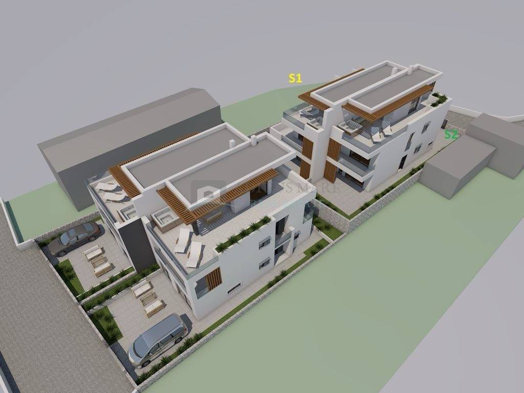 Duplex kuću sačinjavaju dvije stambene jedinice, svaka neto površine cca 235.81 m2 + dva parkirna mjesta + okućnica.