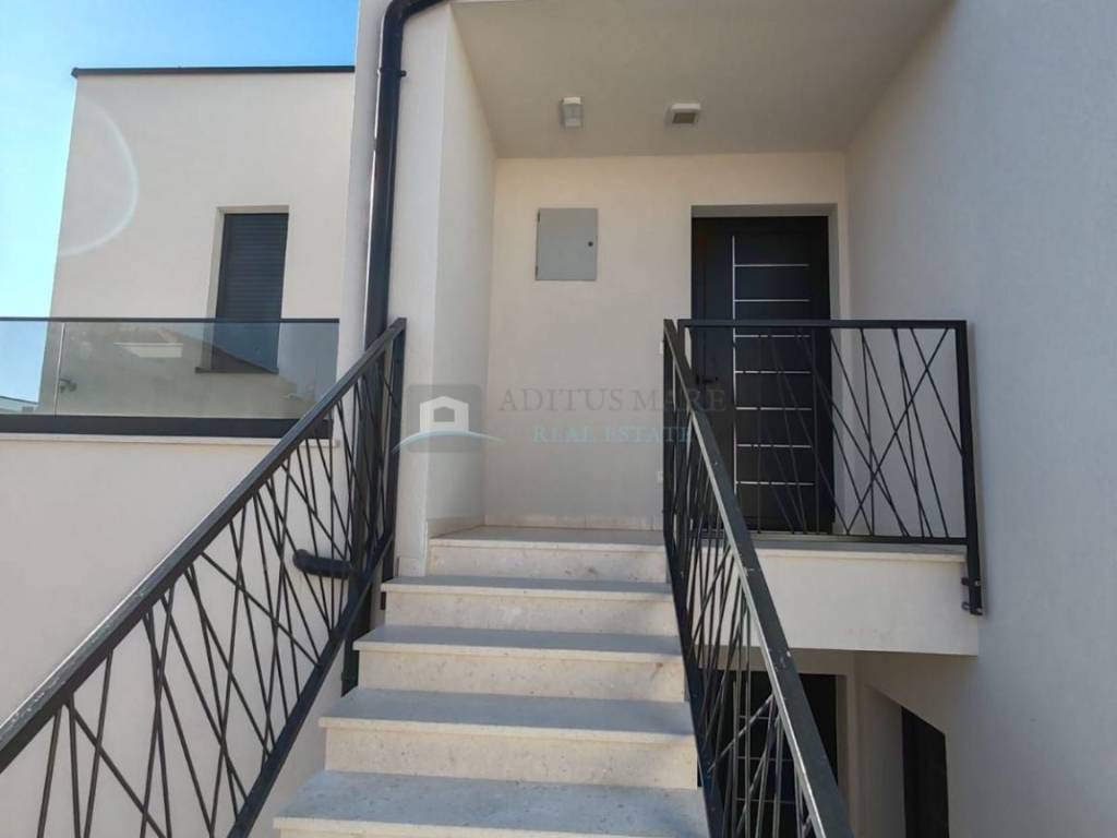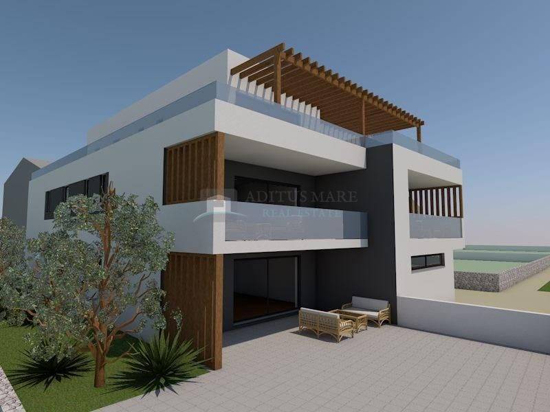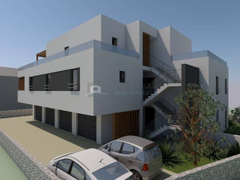Na prodaju stanovi u manjoj stambenoj zgradi, udaljeni svega 200 metara od mora i uređene plaže te centra mjesta. Zgrada se sastoji od četiri stambene jedinice koje se prostiru na prizemlje, prvi i drugi kat. U prizemlju objekta su 4 natkrivena garažna mjesta. Objekt je trenutno u početnoj fazi gradnje, planirani završetak radova i useljenje je kraj ljeta 2024. Gradi se po posljednjim standardima gradnje s vrhunskim materijalima od strane certificiranih građevinskih tvrtki.