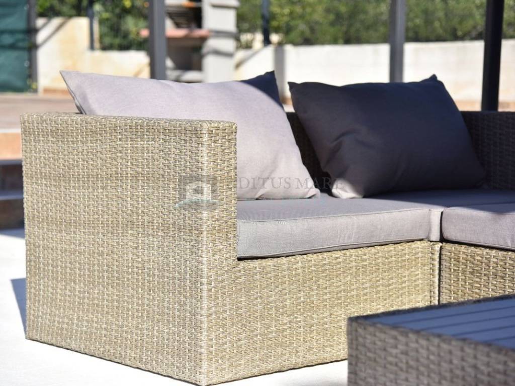 Na prodaju luksuzna villa s bazenom u Tribunju, udaljena samo 150 metara od mora. Prostire se na prizemlje i prvi kat, na terenu površine 570 m2. U prizemlju se nalazi hodnik, WC, spavaća soba s kupaonom, kuhinja s blagovaonicom te dnevni boravak s izlazom na terasu na kojoj je bazen ( 7x4m). Na prvom katu su još dvije spavaće sobe, svaka s vlastitom kupaonicom te vlastitim balkonom. U dvorištu se još nalazi vanjski grill, vrtna garnitura. Kuća je kompletno uređena te se takva i prodaje. Opremljena s klima uređajem u svakoj prostoriji, PVC - Alu zatvori s komarnicima, solarna priprema tople vode. Slobodno nas kontaktirajte za više informacija kao i termin razgledavanja.