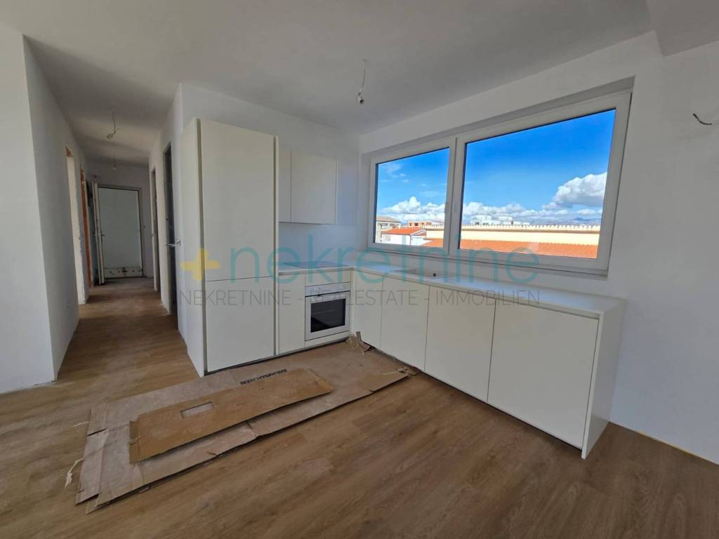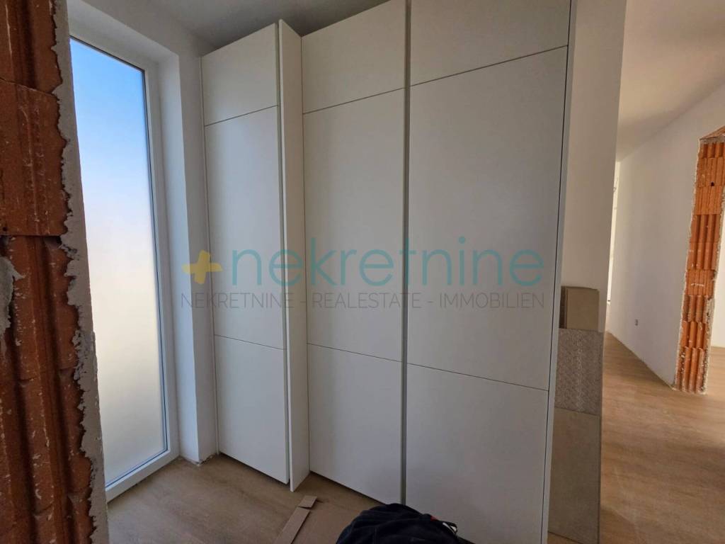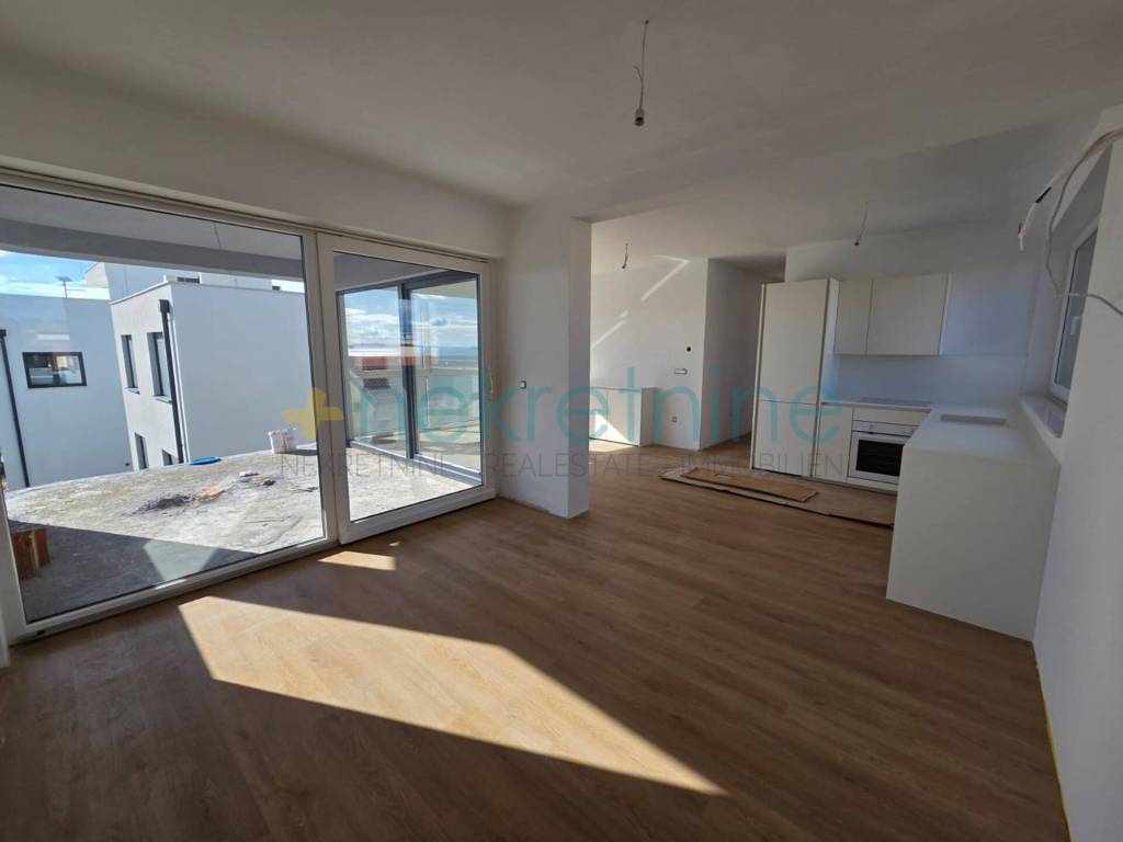 Opis stana: 3 spava��e sobe Veliki i prostrani dnevni boravak s kuhinjom i blagovaonicom Izlaz iz dnevnog boravka na natkrivenu terasu s pogledom na more 2 WC-a (jedna kupaonica + zaseban toalet) Odvojeni prostor za garderobu s ugradbenim ormarom ra��enim po mjeri Uz stan dolazi: Kuhinja ra��ena po mjeri (uklju��ena u cijenu) Vlastito parkirno mjesto