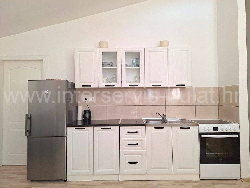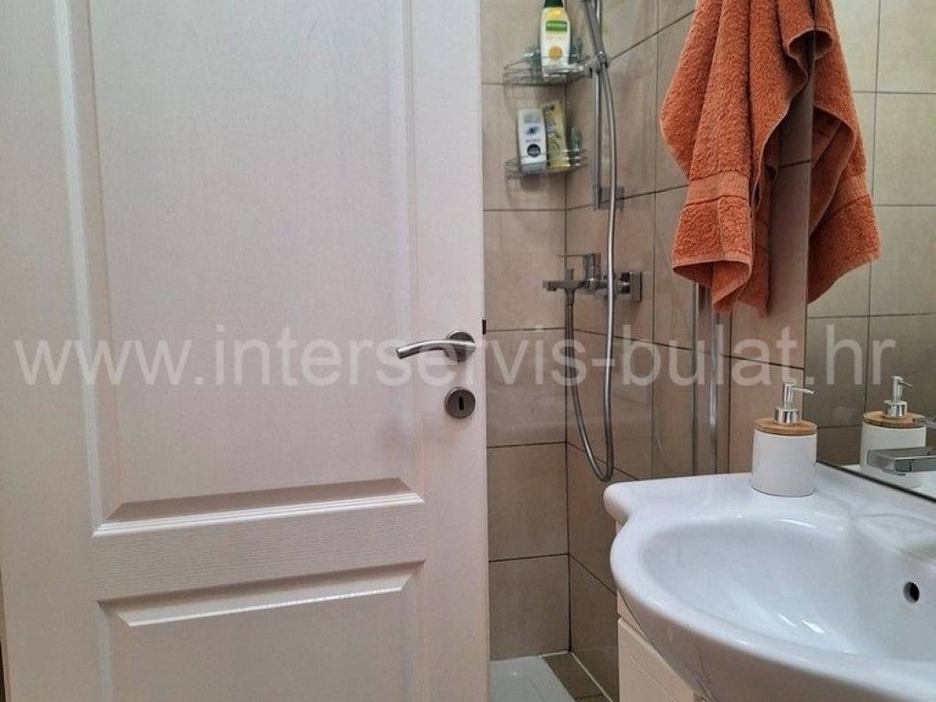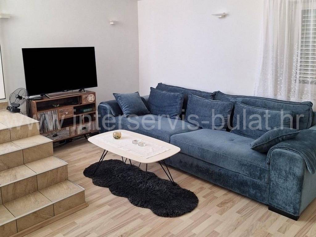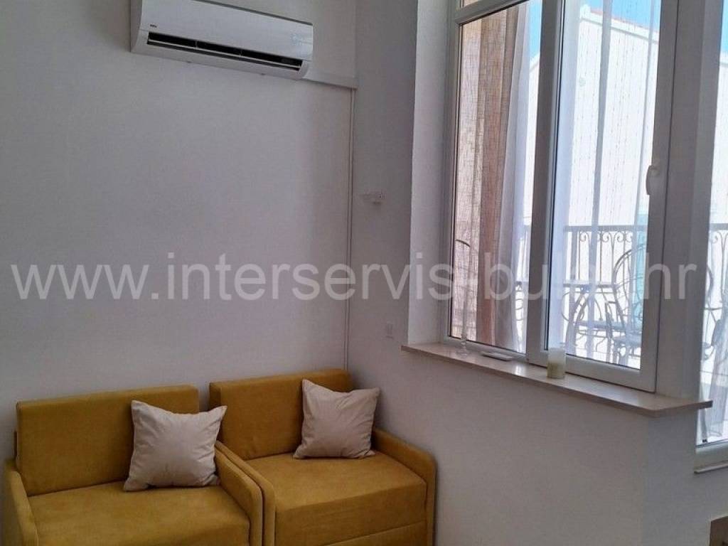 .::: Nice one-bedroom apartment with sea view :::. In the Šibenik area called Varoš there is a neat and well-maintained house. The apartment in question is located on the first floor of the house and has 58.81 sqm of usable area. It has internal stairs that are used exclusively for that apartment. Going up to the first floor we find a hallway, bathroom, bedroom with wardrobe, kitchen with dining room and living room with access to a balcony with a beautiful view of the sea. The apartment is nicely furnished, neat, well-maintained and ready to move in. The center of Šibenik is about 180m away, and Banj beach is about 1km away by air distance. Tour of the property is available by prior arrangement and appointment booking (two days in advance). Please specify ID number of the property when contacting us. Looking forward to your call.