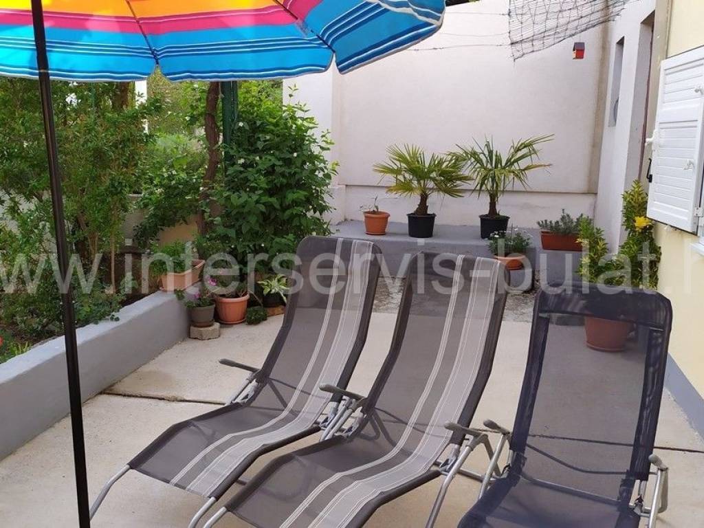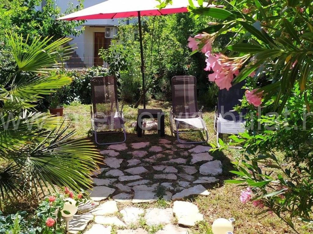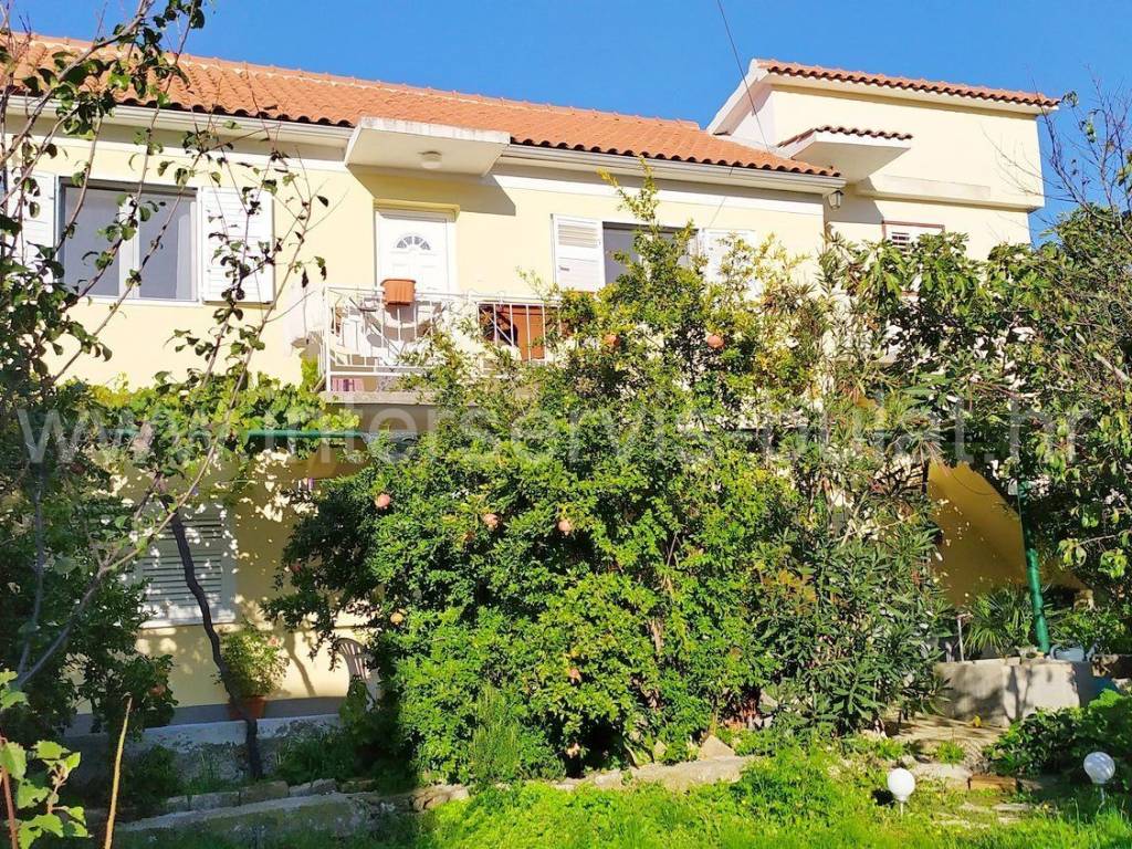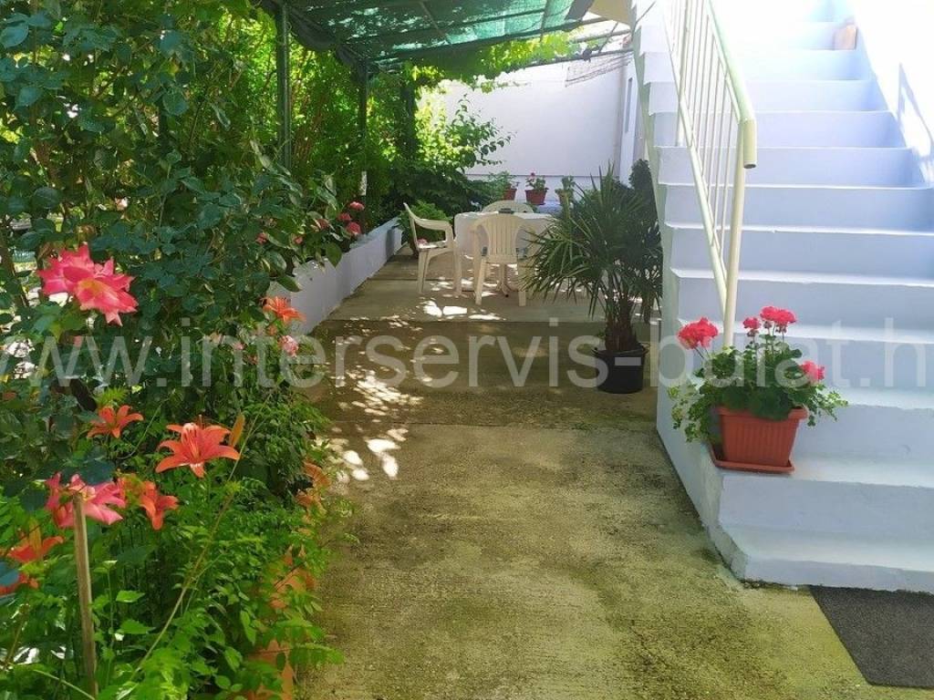 .::: House with beautiful garden in Bilice :::. In a quiet location in Bilice, Stubalj district, a family house with approximately 120sqm of living space and two apartments is for sale. On the ground floor of the house there is a 17sqm garage and a ready-to-move-in apartment of 45sqm with access to a comfortable terrace in the yard. External stairs lead to the first floor, where there is a second apartment of 55sqm with a balcony and a separate room with a mini-kitchen and toilet (space above the garage) that needs to be finished. A barbecue area of approximately 13sqm is situated on the northwest facade of the house. The house is placed on a plot of 246sqm, has a beautifully landscaped garden with space for enjoyment and a variety of plants. Lake Prokljan is only 140m away. Tour of the property is available by prior arrangement and appointment booking (two days in advance). Please specify ID number of the property when contacting us. Looking forward to your call.