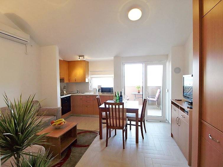 In vendita monolocale situato al piano terra di un edificio residenziale di recente costruzione, a soli 250 metri dal mare. La superficie totale abitabile è di 44 m2 e si compone di cucina, soggiorno con zona pranzo, camera da letto, bagno e terrazza che offre uno spazio aggiuntivo per il relax. L'appartamento dispone inoltre di un posto auto.
