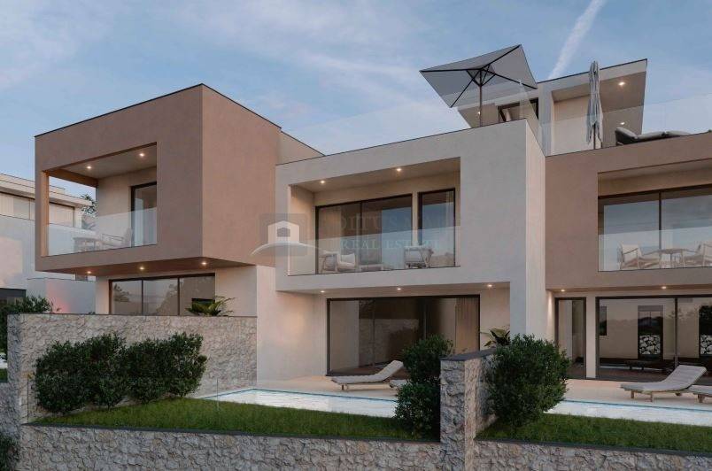 Stan ima pažljivo osmišljen i funkcionalan raspored. U prizemlju se nalazi prostrani dnevni boravak s kuhinjom i blagovaonicom koji se povezuje s natkrivenom terasom i privatnom okućnicom s bazenom, u prizemlju se također nalazi spavaća soba i kupaonica. Na prvom katu smješten je komforan spavaći dio s dvije spavaće sobe, kupaonice dok je jedna od njih s vlastitom kupaonicom i garderobom. Krovna etaža nudi ekskluzivan vanjski prostor idealan za opuštanje, druženja i uživanje u pogledu.