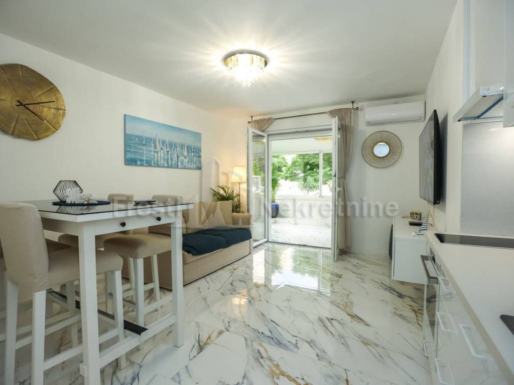 Prodaje se luksuzan novouređen potpuno namješten stan površine 50 m2 na Bulevaru u Zadru. Stan se nalazi u visokom prizemlju stambene zgrade.