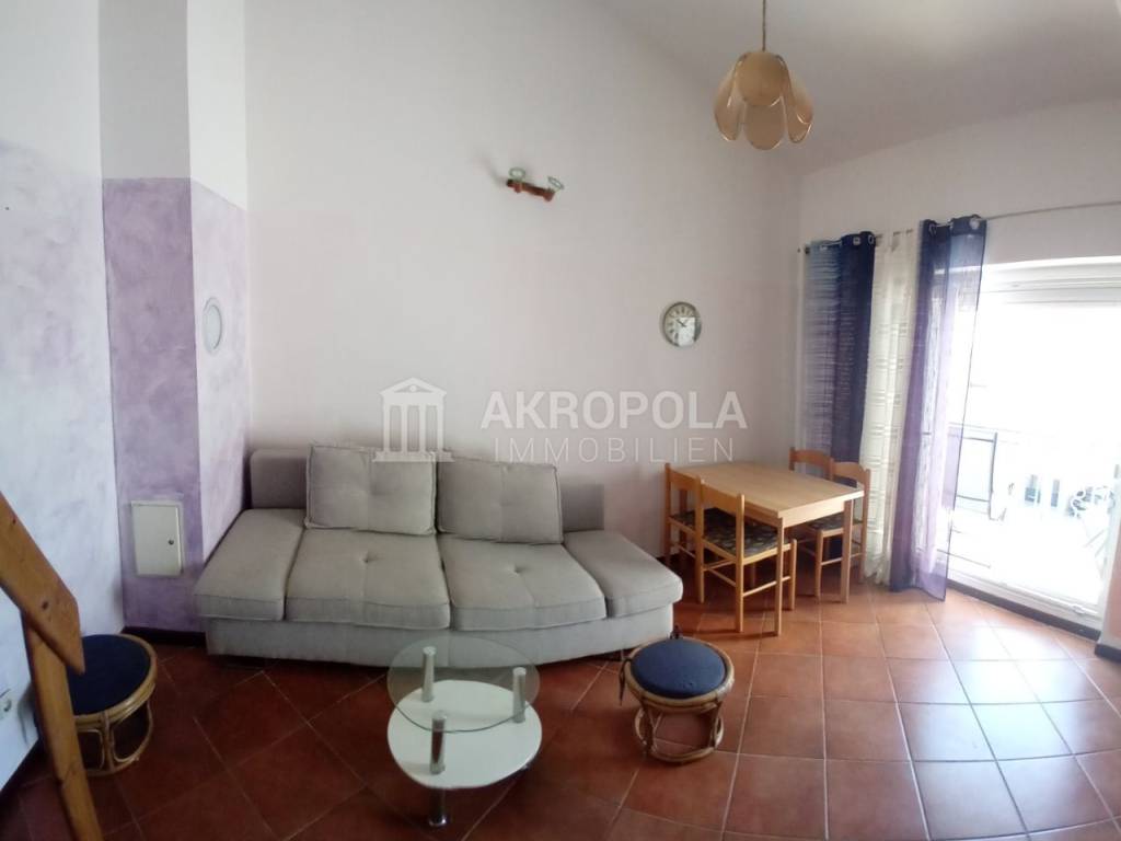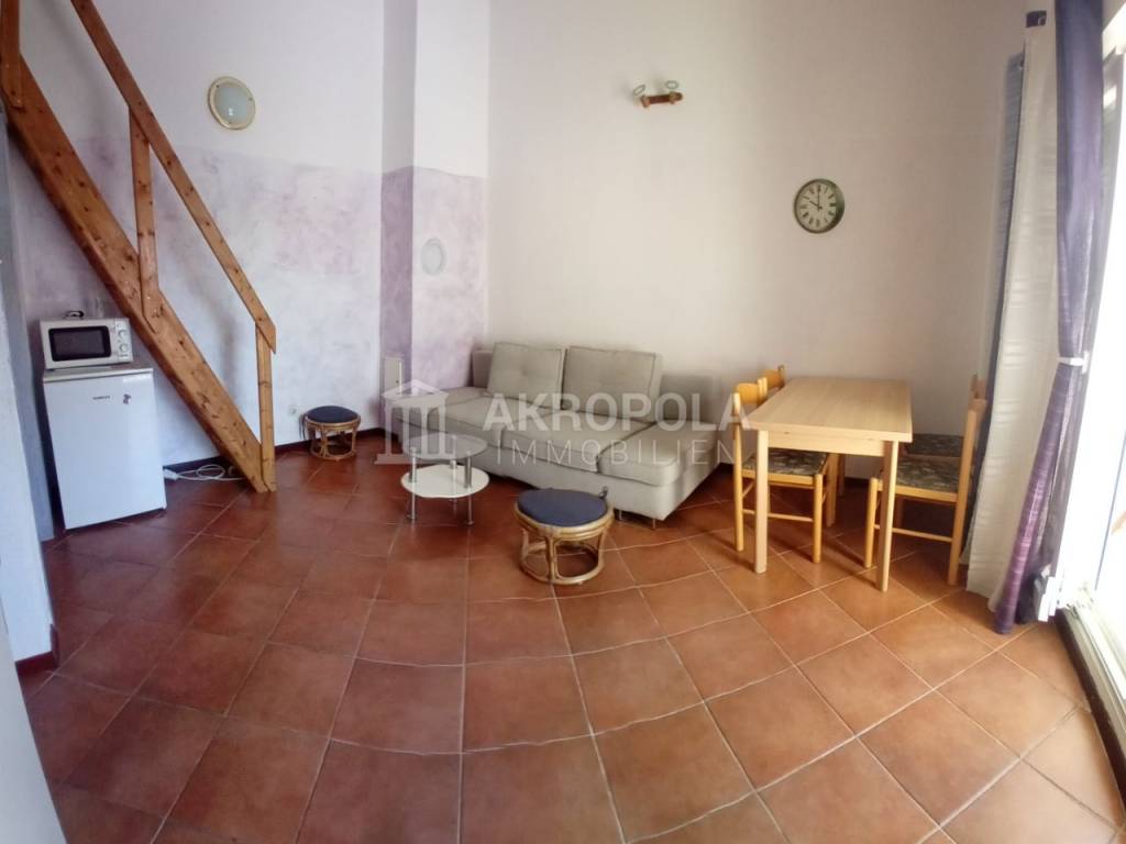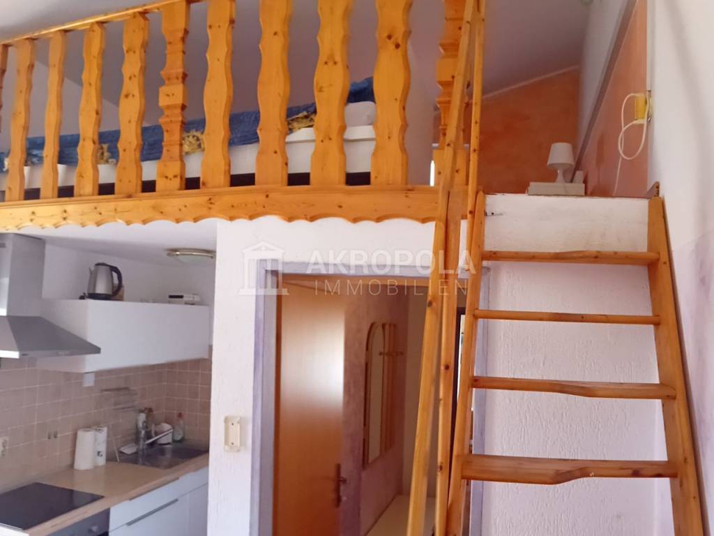 The apartment is located on the 2nd floor of the building, and consists of 2 parts, the first part of the apartment consists of a living room with a kitchen that leads to a balcony with a sea view, a bathroom and a gallery that serves as a bedroom,