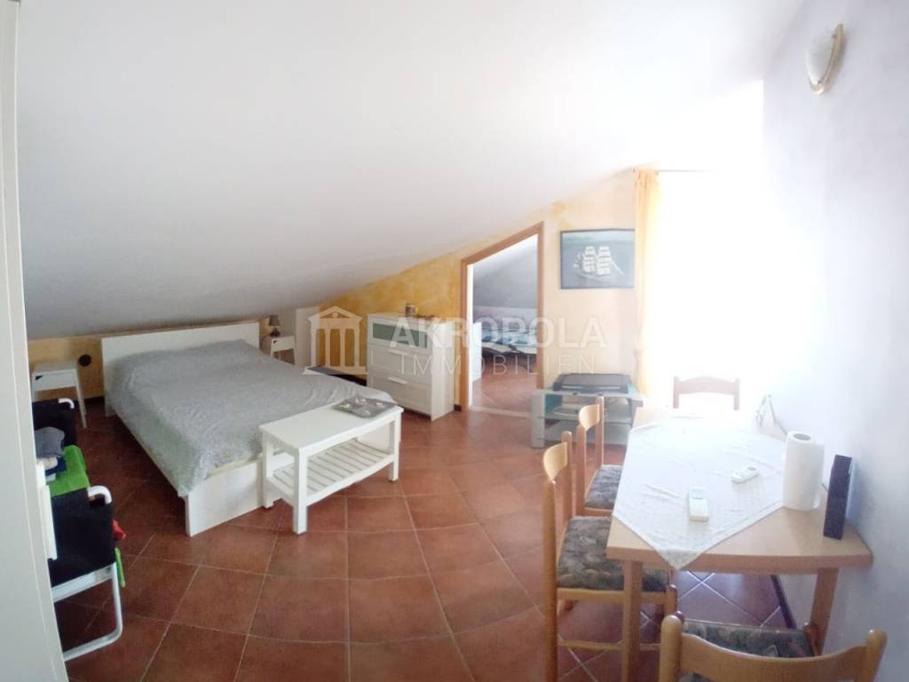 the second part of the apartment has a kitchenette, bathroom, 2 bedrooms and a loggia that offers a view of the Medulin Bay.