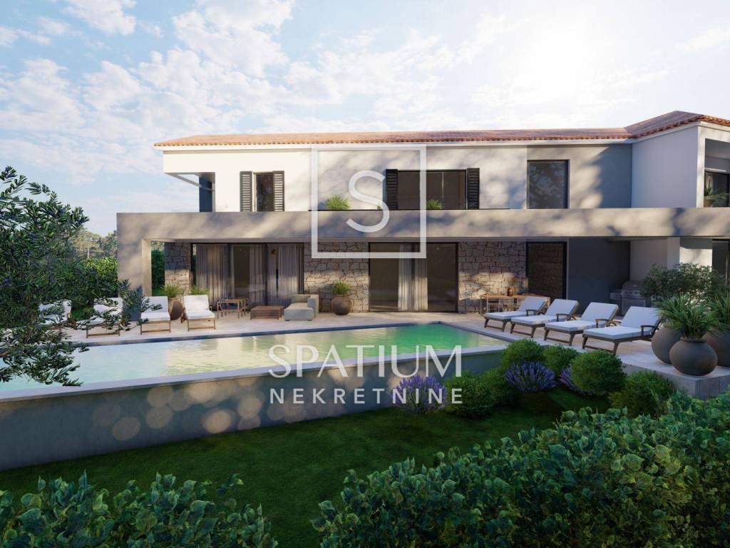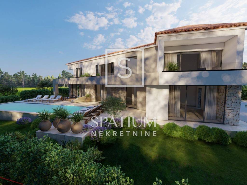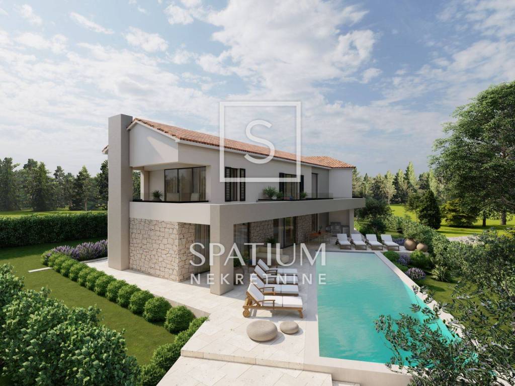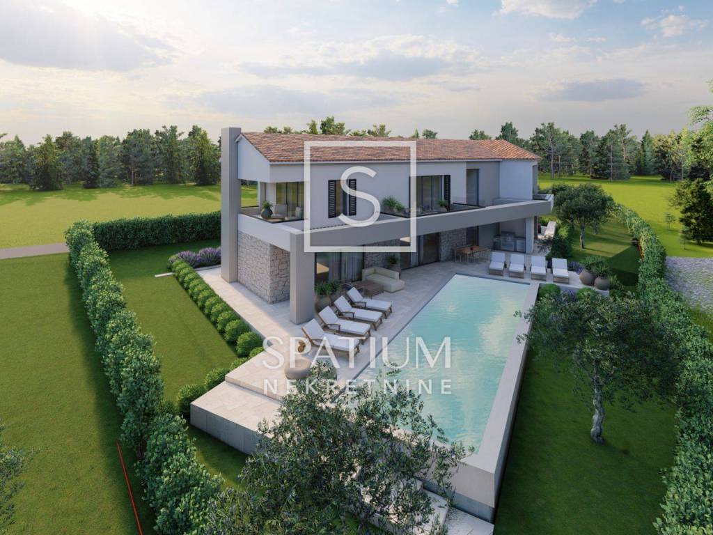 KAŠTELIR, offriamo una casa moderna in un nuovo edificio, situata in una zona tranquilla del villaggio con una bellissima vista sul mare e vicino a Parenzo. La casa è ideale per chi cerca tranquillità e privacy, e allo stesso tempo vuole essere vicino a tutti i servizi necessari. La superficie della casa è di 249 mq e comprende un ampio soggiorno con cucina e sala da pranzo in un concetto open space, quattro camere da letto, ciascuna con il proprio bagno, e spazi aggiuntivi che garantiscono il massimo comfort. Al piano terra troviamo ingresso, wc, lavanderia, locale caldaia, soggiorno con cucina e sala da pranzo, camera con bagno e terrazzo coperto. Al piano superiore troviamo un disimpegno, uno studio, tre camere da letto, ciascuna con il proprio bagno, un terrazzo coperto ed uno scoperto, perfetti per godersi la vista mare. La casa è dotata di riscaldamento elettrico a pavimento e aria condizionata in tutte le stanze, e sono già stati installati tutti gli impianti e le infrastrutture necessarie. Il cortile di 1000 mq comprende una spaziosa piscina di 49 mq, ideale per rilassarsi e godersi le giornate di sole. La proprietà viene offerta "chiavi in mano" e il completamento previsto della costruzione è previsto per la fine del 2024. Kaštelir è un affascinante villaggio istriano situato su dolci colline, a pochi chilometri dalla costa. Circondato da vigneti e uliveti, offre splendide viste panoramiche sulla natura e sul mare in lontananza. Questo luogo tranquillo è noto per la sua gastronomia locale e gli eventi locali che celebrano la tradizione istriana. La vicinanza di centri turistici come Parenzo lo rende attraente per chi cerca la tranquillità e allo stesso tempo vuole essere vicino al mare e a tutti i servizi. Kaštelir è l'ideale per rilassarsi, ma anche per godersi lo stile di vita istriano. Per tutte le altre informazioni contattateci con fiducia. Spatium nekretnine + 385 51 272 903 info@spatium.hr