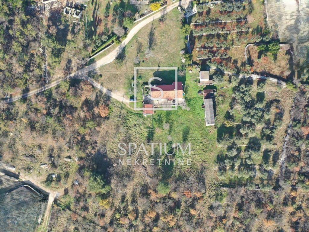 All’interno della zona edificabile si trova una casa residenziale di circa 200 m², costruita nel 1989 e sviluppata su due livelli. L’immobile è situato nella parte urbanizzata dell’abitato ed è possibile procedere con interventi di ristrutturazione, ampliamento o nuova costruzione sostitutiva, in conformità al Piano Regolatore Generale della Città di Buie.
