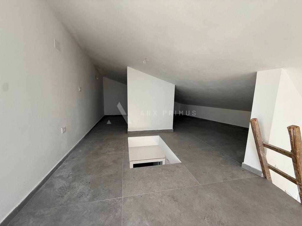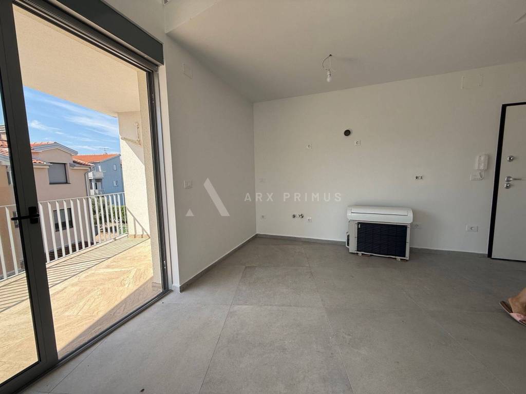 Ampio appartamento in ottima posizione a Zambratija, vicino alla spiaggia e al mare, con vista mare. L'appartamento è distribuito su due piani e dispone di cucina e soggiorno, 2 camere da letto, un bagno, un soppalco per un'altra camera da letto o ripostiglio e 3 terrazze. Aria condizionata installata. Posto auto di fronte all'edificio. Eccezionale opportunità di investimento!