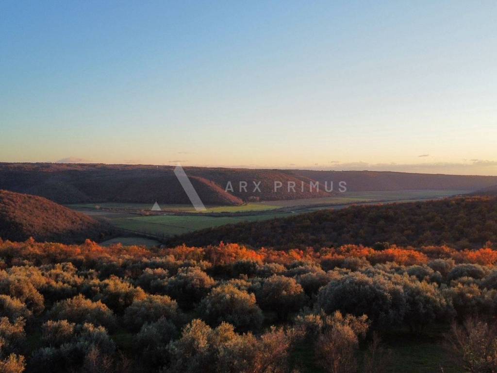 Terreno edificabile a Buje con una splendida vista aperta sul mare, sulla valle del fiume Quieto e sulle colline e il verde circostanti. Il terreno si trova proprio ai margini dell'insediamento e offre completa pace e privacy. Un'opportunità eccezionale e una rarità sul mercato.