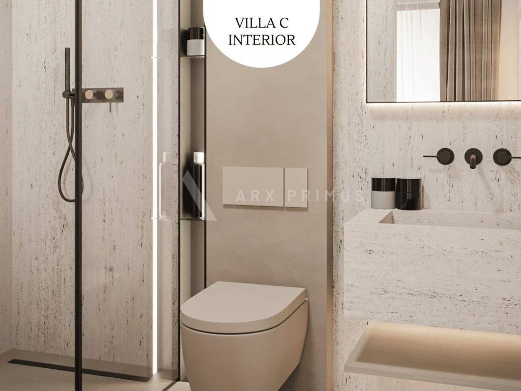 Al piano terra della villa si trova un soggiorno open space con sala da pranzo e cucina, una camera da letto, un bagno, WC, un ripostiglio e un'uscita sul terrazzo e cortile con piscina e spazio per socializzare e divertirsi. Al primo piano ci sono 4 camere da letto, ciascuna con il proprio bagno, e un bel terrazzo ampio con vista sul mare e sulla natura.